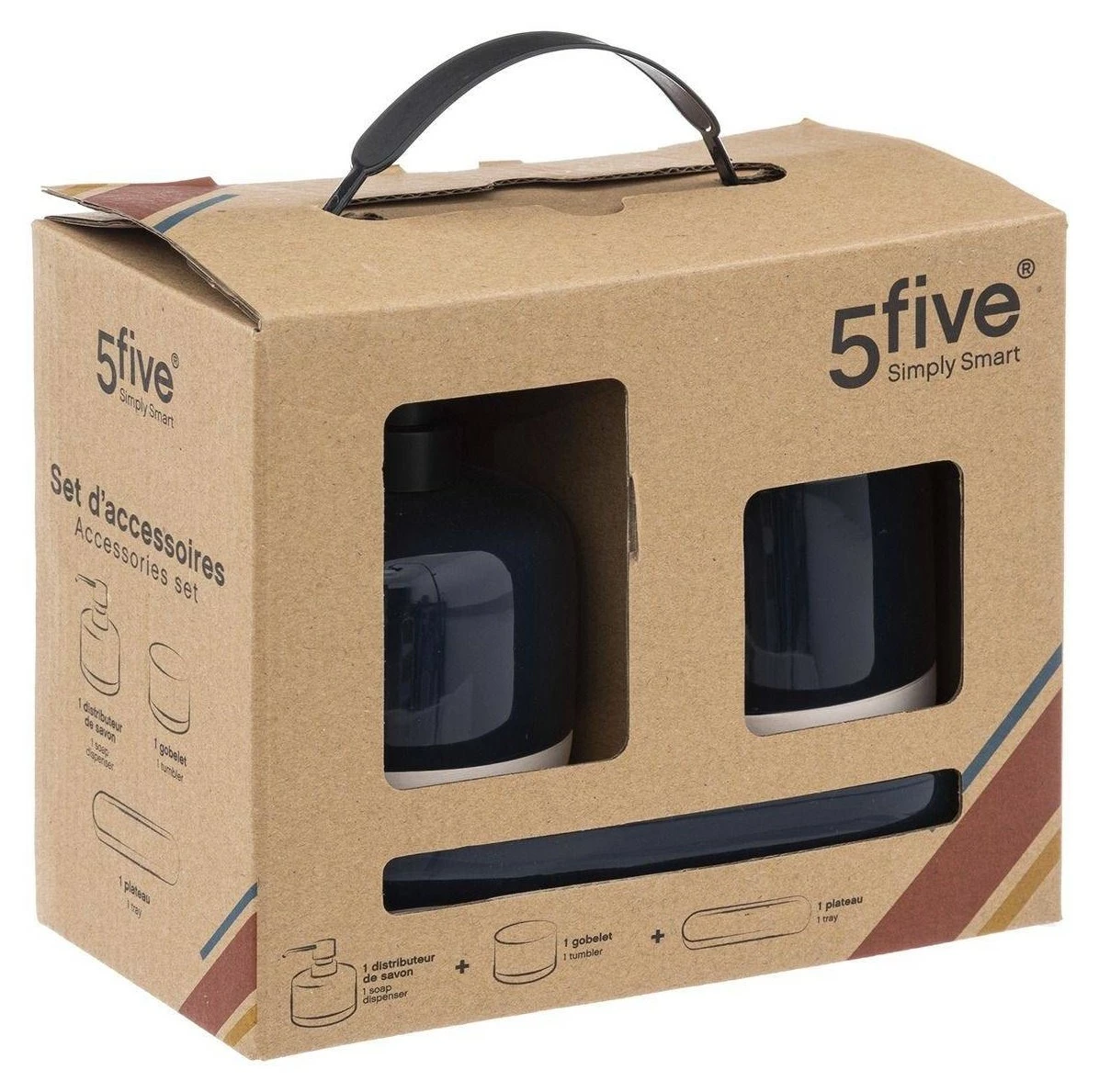 - das Kit beinhaltet einen Seifenspender, einen Zahnbürstenbehälter, einen Ständer,