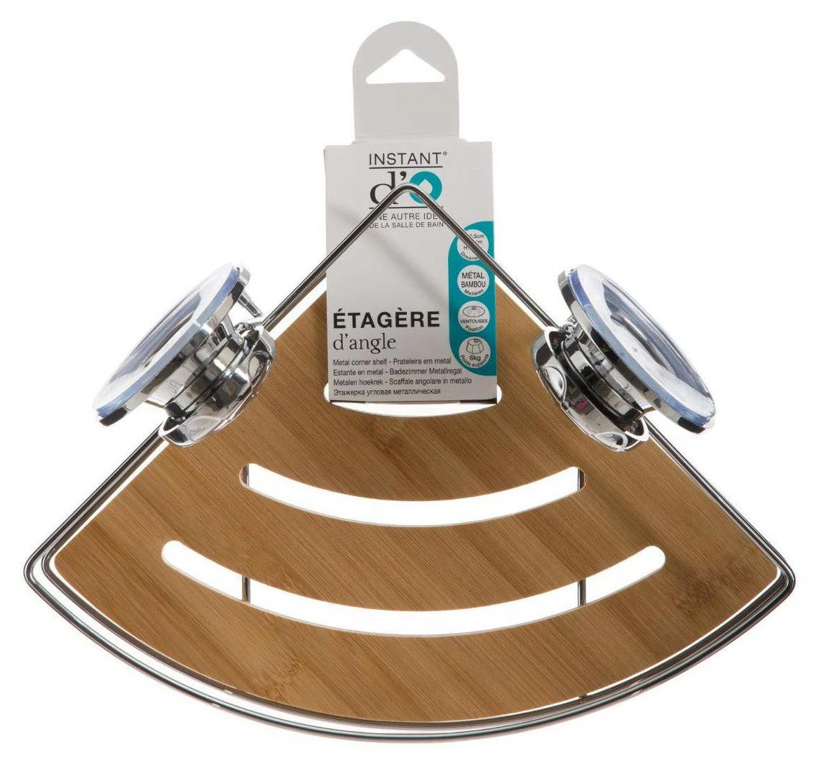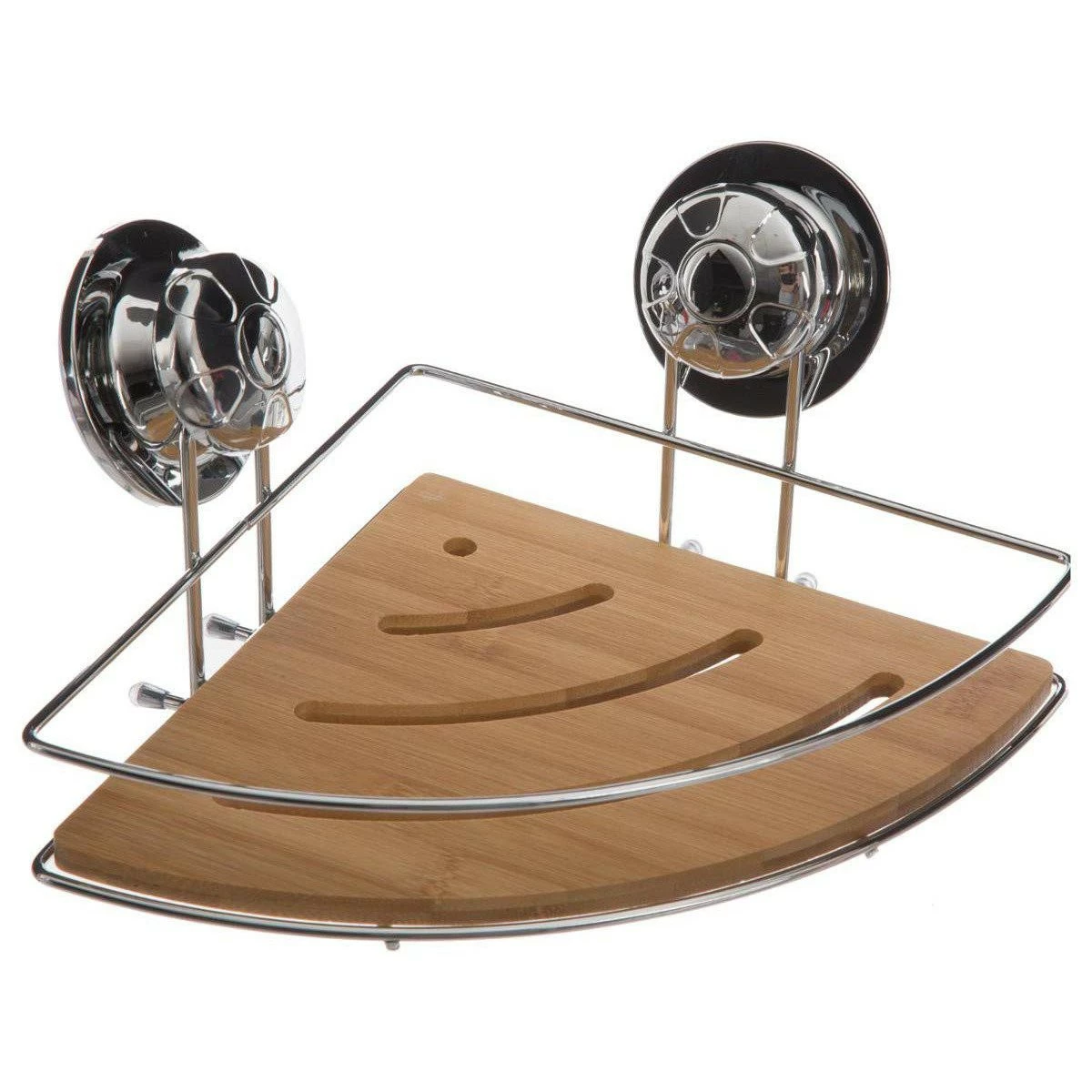CADDY Eckbadezimmer-Regal, für Saugnapf, Bambus geschätzte Marke 5five Simple Smart ist ein praktisches Bad-Accessoire, das sicher in jedem Zuhause nützlich ist. Das Regal ermöglicht es Ihnen, zusätzlichen Platz für alle notwendigen Dinge für die tägliche Pflege zu schaffen. Es wird perfekt für alle Kosmetika wie Haarshampoo, Duschgel oder Seife sein. Sie können es in der Dusche, neben dem Waschbecken oder einfach dort aufhängen, wo Sie es am meisten brauchen. Dank eines zuverlässigen Saugnapfs können Sie ihn einfach überall platzieren, und Sie müssen keine Löcher bohren, um ihn aufzuhängen.