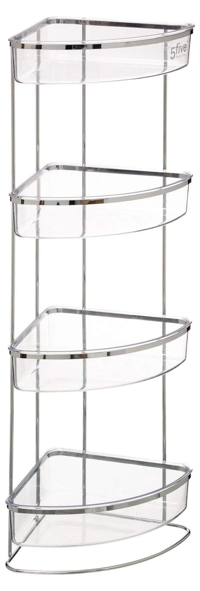 MANTA Eckbadezimmer-Regal, 4 Ebenen, hängen von der renommierten Marke 5five Simple Smart ist ein universelles Bad-Accessoire, das sicher in jedem Zuhause nützlich ist. Das Regal ermöglicht es Ihnen, zusätzlichen Platz für alle notwendigen Alltagsgegenstände zu schaffen. Es wird perfekt für alle Kosmetika, Haar-Styling-Accessoires oder Handtücher sein. Sie können es neben dem Waschbecken oder der Dusche oder einfach nur dort platzieren, wo Sie es am meisten brauchen. Das Regal ist extrem leicht und auf eine sehr einfache Art und Weise können Sie es an einem geeigneten Ort aufhängen.