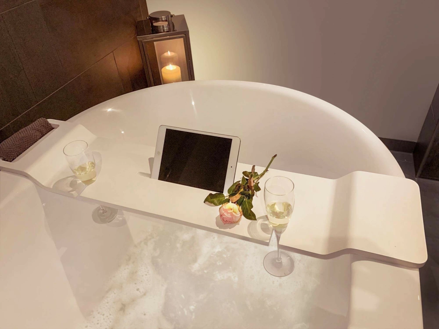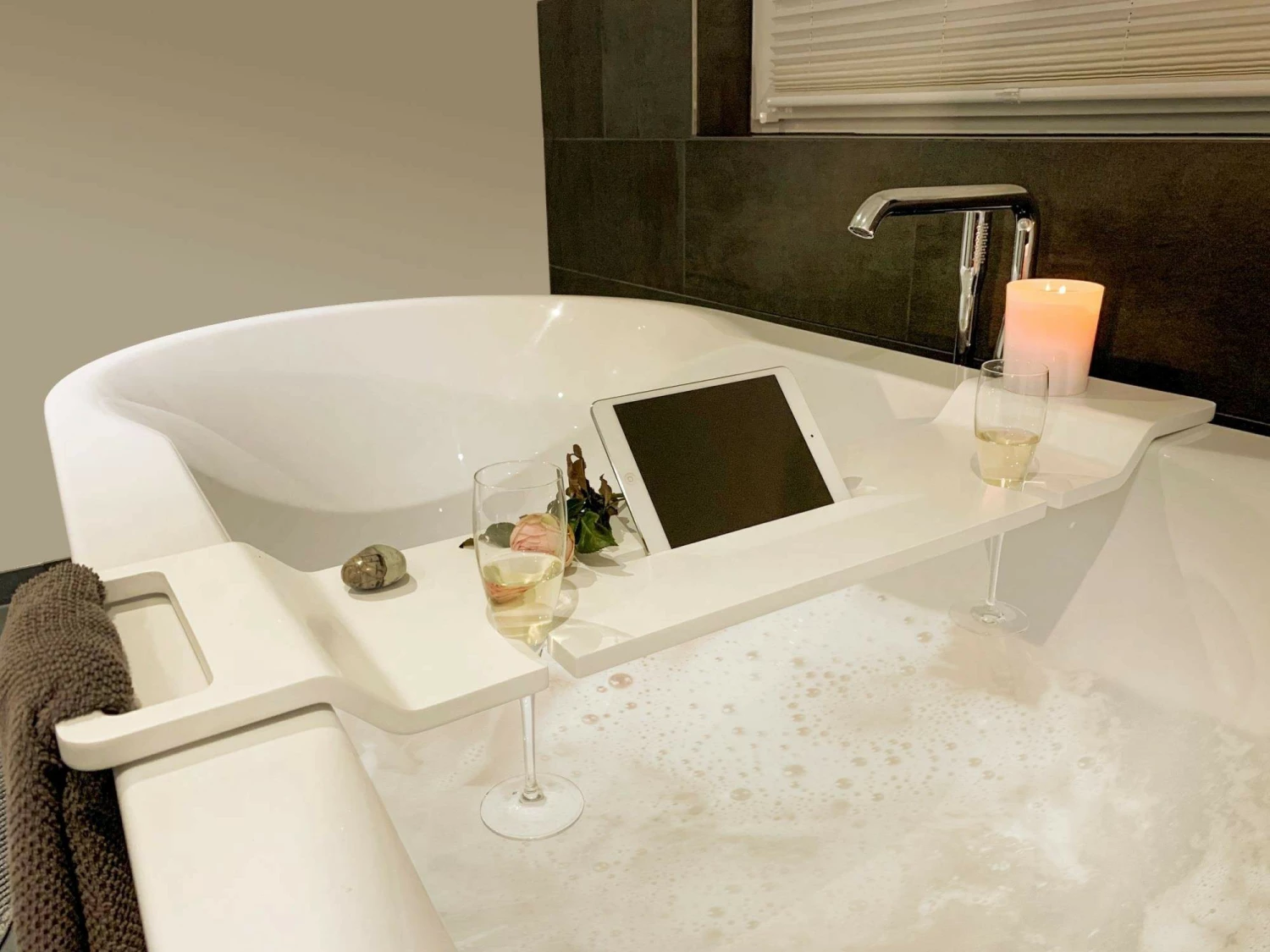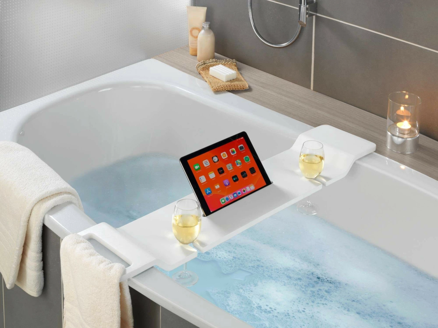 - dank der richtigen Länge, ruht sicher an den Rändern des Bades,