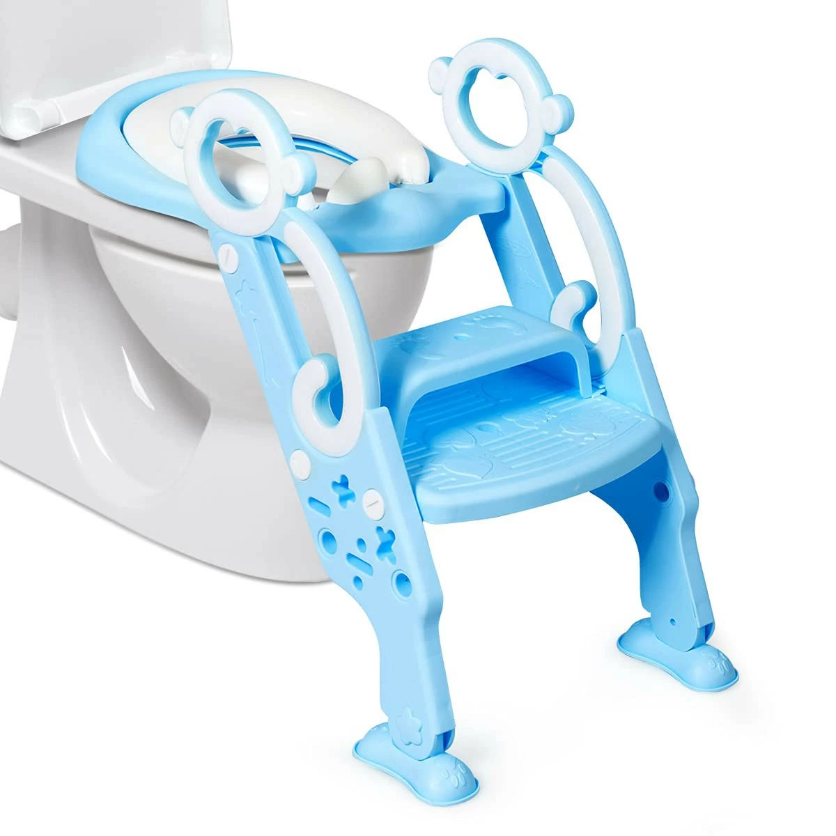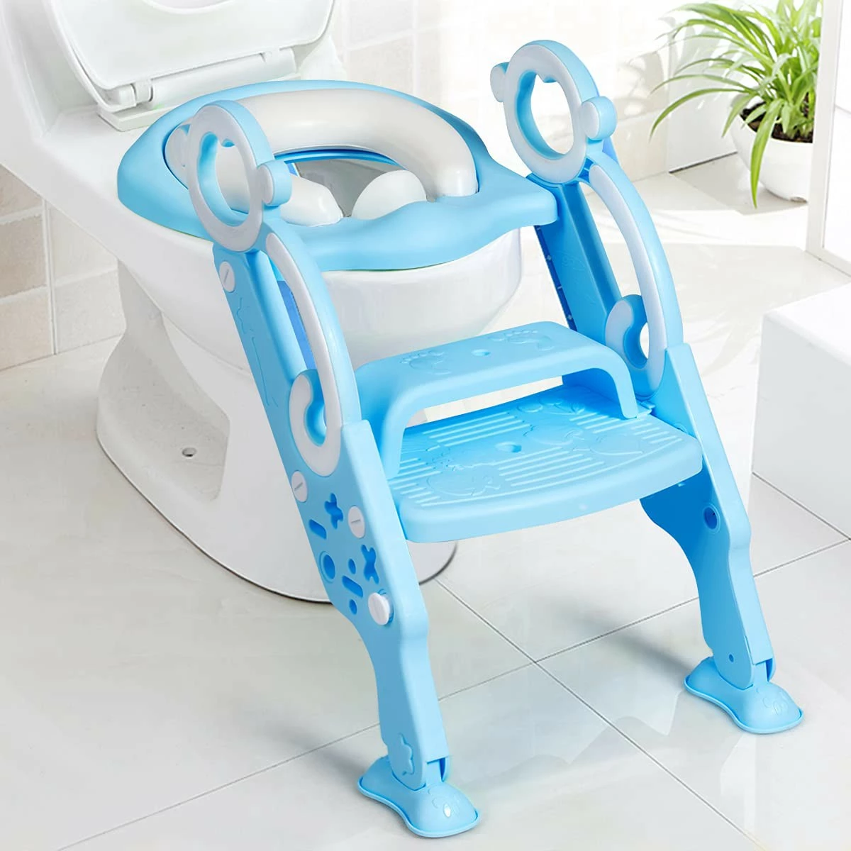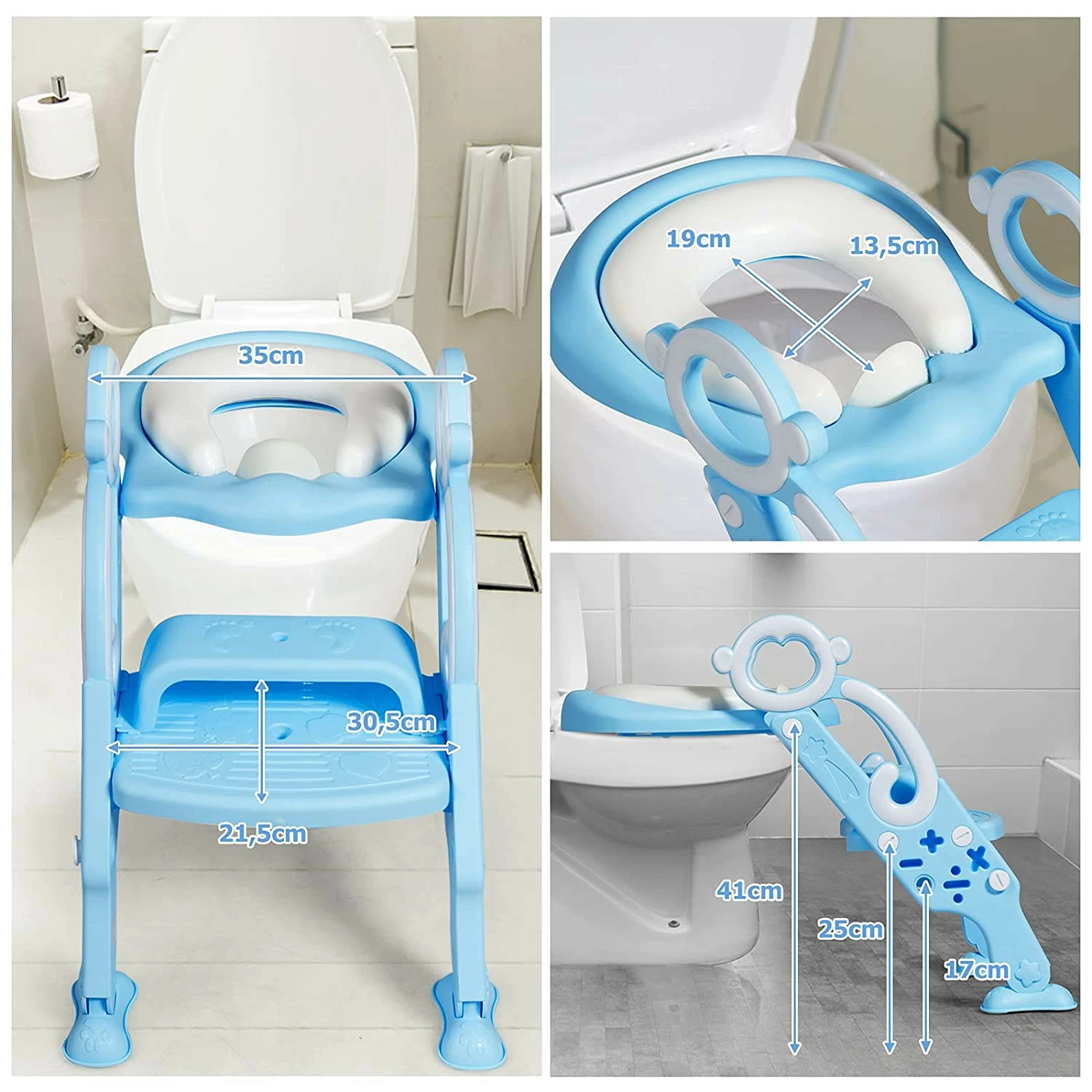 Dieser Toilettentrainer wurde entworfen, um es Kindern zu ermöglichen, selbstständig auf die Toilette zu gehen. Er wird aus hochwertigen Materialien hergestellt und hat daher eine überaus lange Lebensdauer. Das abnehmbare, weiche Kissen um den Sitz fördert die positive Erfahrung Ihres Kindes und wird sein Interesse für eine eigenständige Nutzung fördern. Die Sicherheit Ihres Kindes wird hierbei durch die leicht greifbaren Griffe sowie die breite, rutschsichere Stufe gewährleistet. Die Höhe dieser Stufe kann sogar äußerst einfach und flexibel an die Größe Ihres Kindes angepasst werden. Dank des faltbaren Designs werden Sie den Trainer jederzeit zusammenklappen und zur Seite stellen können und die schönen, bunten Farben werden Ihr Kind täglich dazu motivieren, den Toilettentrainer zu verwenden.