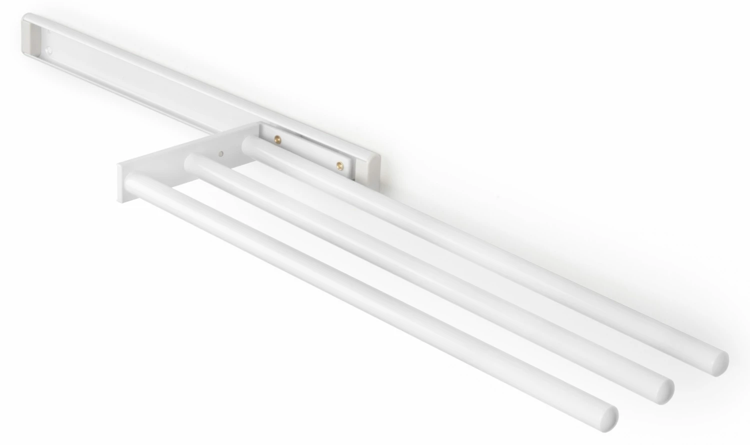 Praktischer, ausziehbarer Halter für Küche oder Bad, aus matt eloxiertem Aluminium oder wei?e Oberfläche. Verfügt über 2 oder 3 Arme zum Aufhängen von Hand- oder Küchentüchern. Diese können um 90° gedreht werden, dadurch kann der Halter an der Möbelseite oder unter der Arbeitsfläche angebracht werden. (Schrauben zur Montage enthalten). Dank der Führung teleskopisch und gut zugänglich.