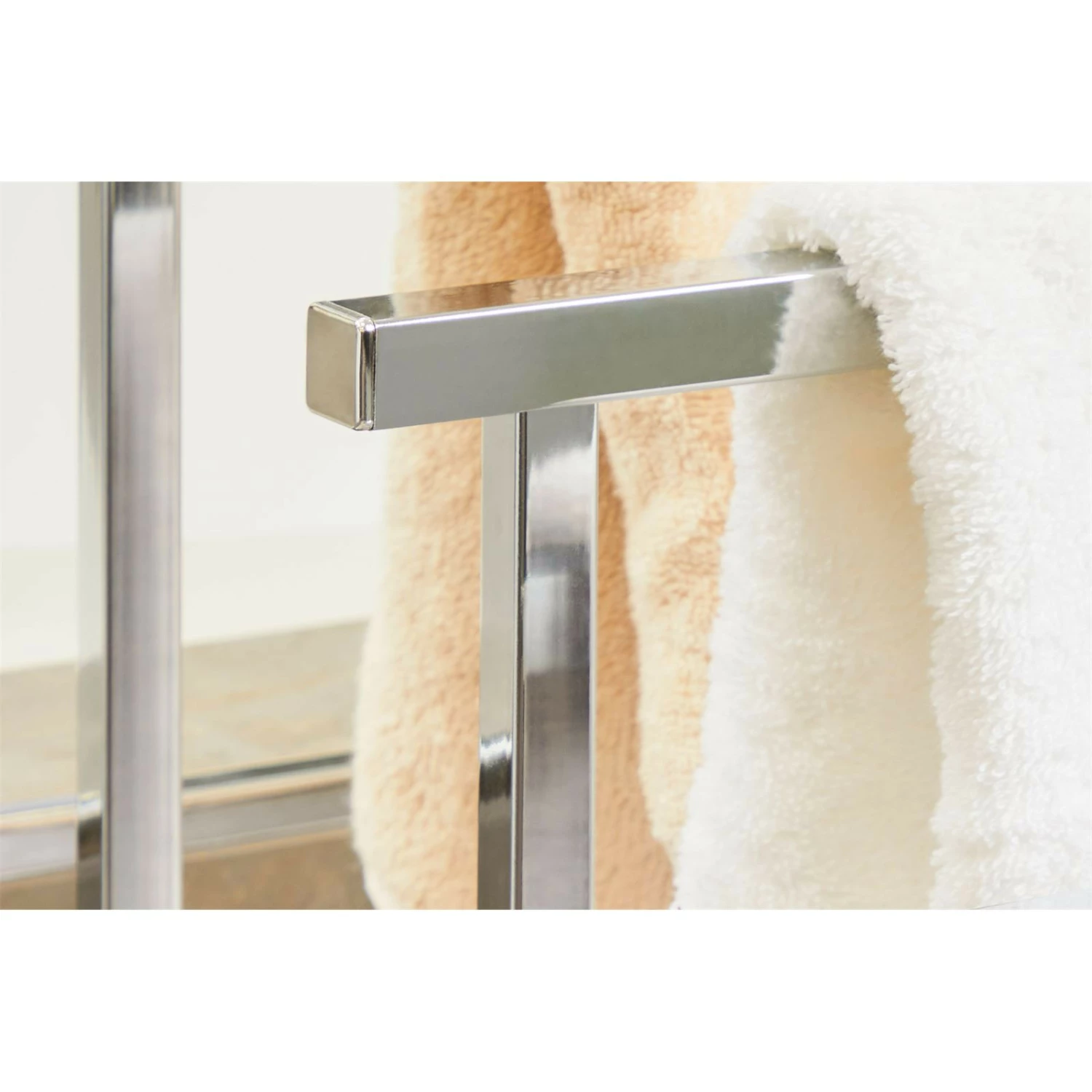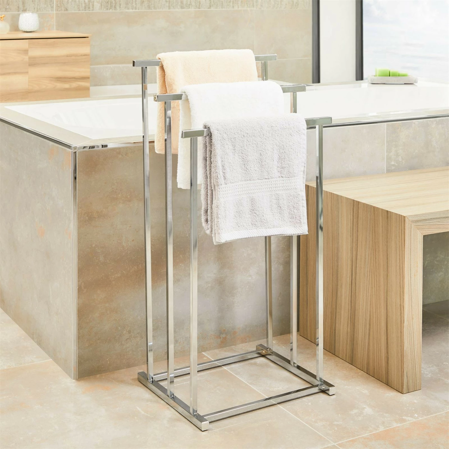 - Der Handtuchständer hat ein Gestell aus Metall und die Oberfläche ist edel verchromt