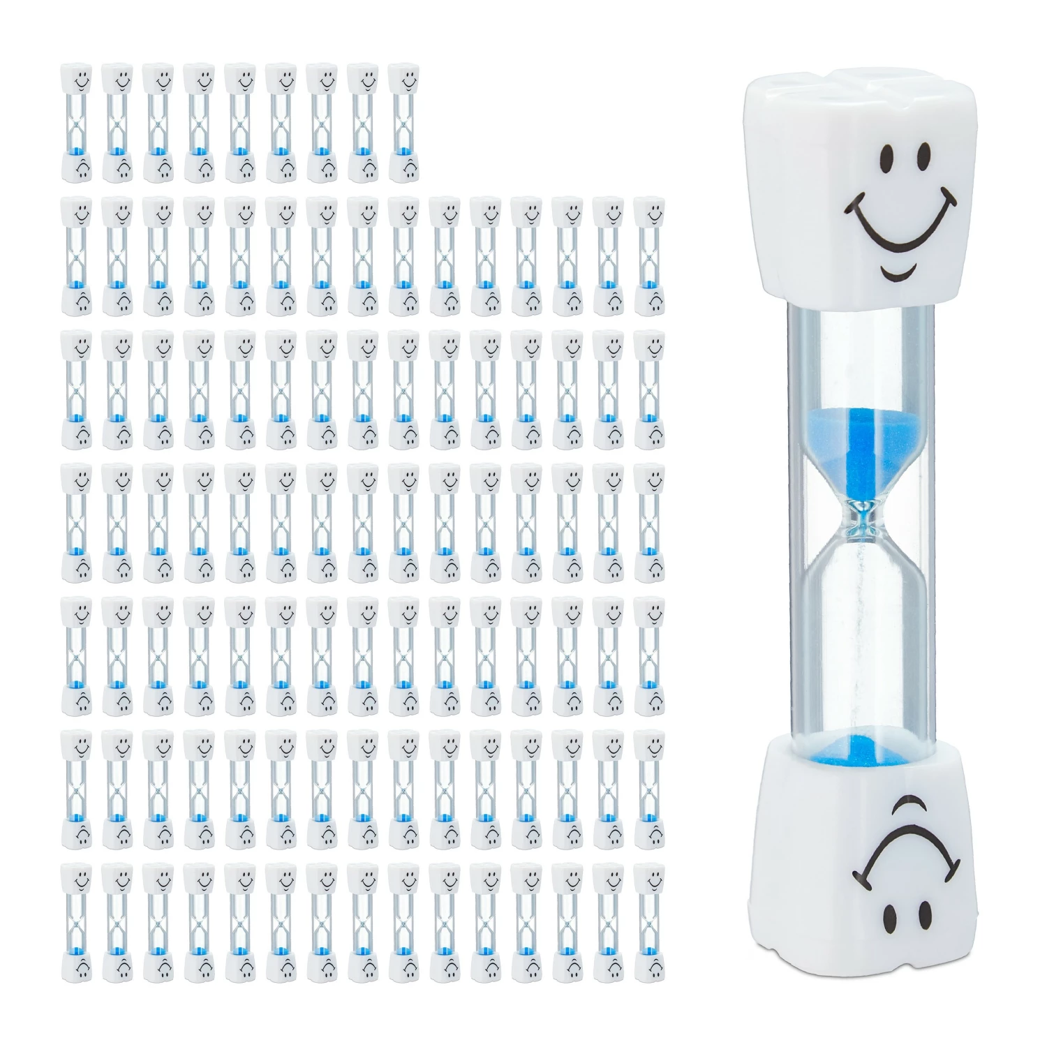 Mit den praktischen Zahnputz Sanduhren im 100er Set haben Sie und Ihre Kinder immer genau das richtige Timing beim Zähneputzen. Eine Umdrehung dauert ungefähr 3 Minuten. Das Verrinnen der Zeit ist durch den blauen Sand gut erkennbar. Das niedliche Zahn-Design mit dem lachenden Gesicht ist kindgerecht und steigert den Spaß an der täglichen Zahnhygiene. Auch in der Küche als Tee- oder Eieruhr oder als Zeitmesser für Spiele ist die Kurzzeituhr ein tolles Hilfsmittel.