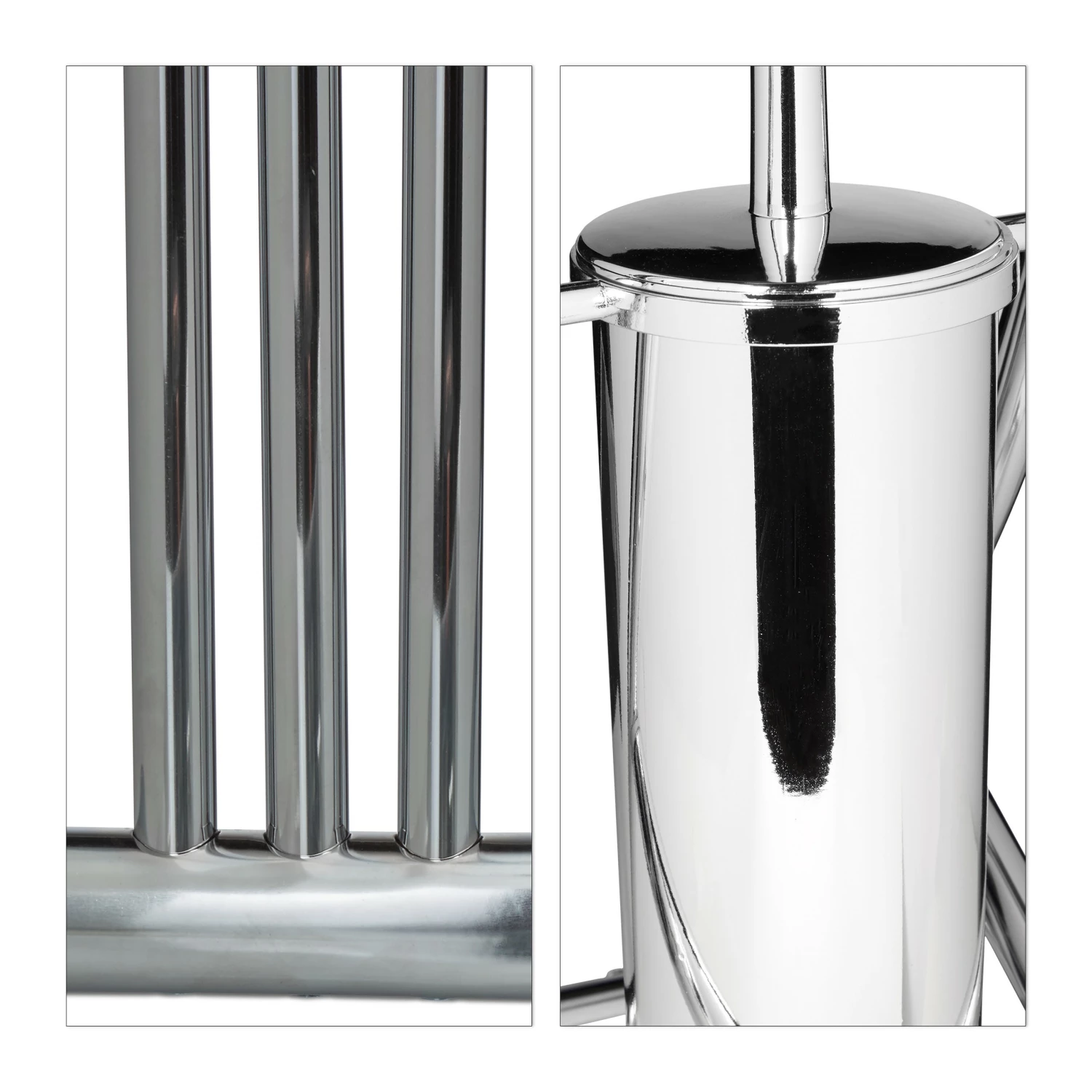 Die Toilettenbürste verfügt über einen weißen Kopf zum Wechseln und wird in einem herausnehmbaren Behälter aus Kunststoff gelagert. Die Reinigung der Bürstengarnitur erfolgt dadurch bequem und hygienisch. Auch der Klopapierhalter lässt sich dank Federmechanismus problemlos herausnehmen.