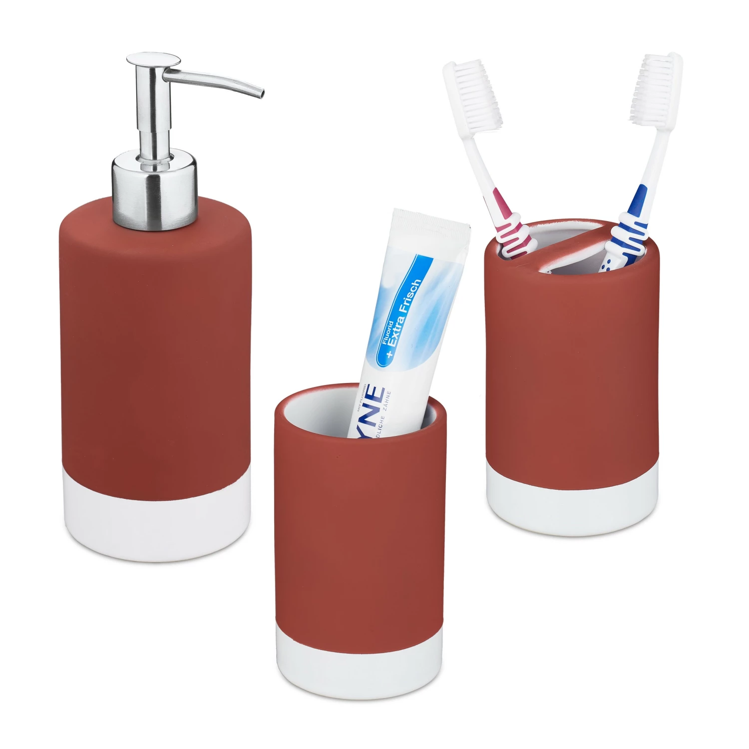 – 3-teiliges Badezimmer Set in mattem Rot