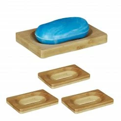 Die Seifenschalen aus Bambus sind praktische Badaccessoires, auf denen feste Seifenstücke für Bad oder Küche platziert werden können. Mit ihren länglichen Abtropflöchern und den Füßchen an der Unterseite gewähren sie genügend Luftzirkulation, um die Seifen nach Benutzung wieder zu trocknen. Widerstandsfähig und feuchtigkeitsbeständig ist Bambus ein ideales Material für eine Seifenhalterung und bringt zudem dekorativ ein Stück Natürlichkeit in Ihre vier Wände.