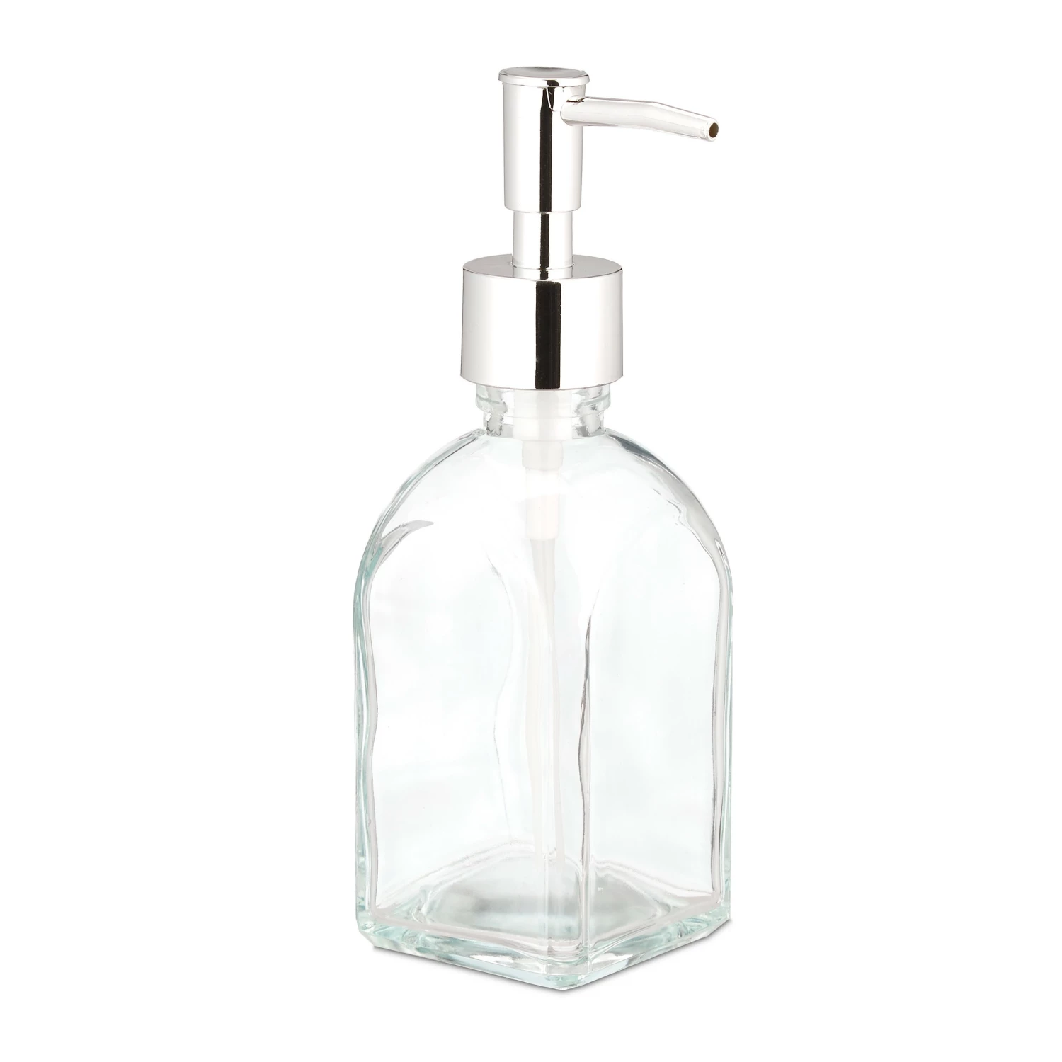 Die praktischen Seifenspender im 4er Set sind nicht nur dekorativ, sondern auch vielseitig einsetzbar. Ob Seife, Lotion, Duschgel, Shampoo oder auch Spülmittel – mit den Pumpspendern lassen sie sich optimal dosieren. Falls die Glasspender einmal leer sein sollten, lassen sie sich durch Abschrauben der Pumpvorrichtung einfach neu befüllen. Das edle Design aus Glas und einem Pumpkopf in Edelstahl-Optik machen die Handseifenspender zu einem eleganten Accessoire für Bad, WC und Küche.