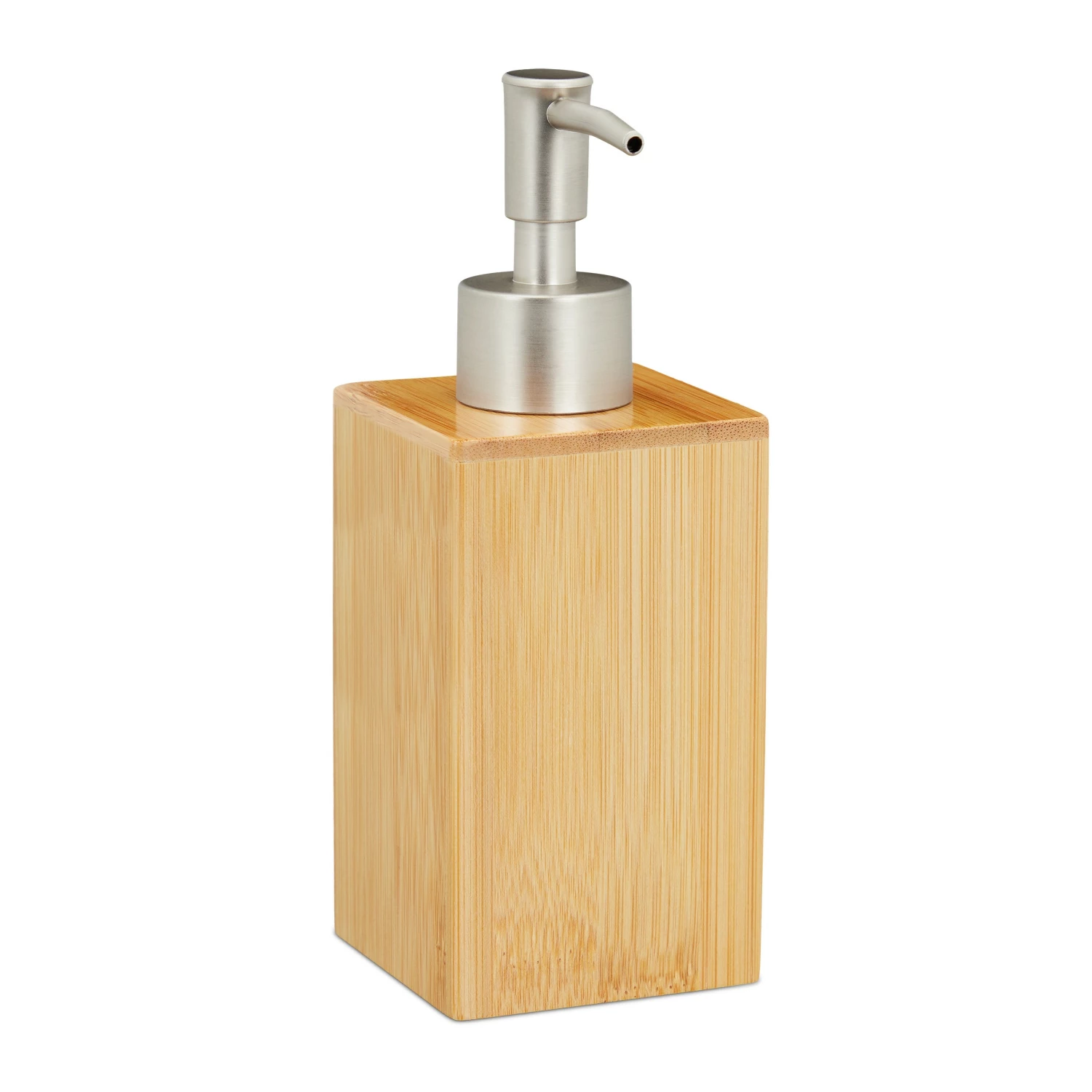 Der praktische Flüssigseifenspender ist nicht nur dekorativ, sondern auch vielseitig einsetzbar. Ob Seife, Lotion, Duschgel, Shampoo oder auch Spülmittel – mit dem Pumpspender lassen sie sich optimal dosieren. Falls der Seifendosierer einmal leer sein sollte, lässt er sich durch Abschrauben der Pumpvorrichtung einfach neu befüllen. Das edle Design aus natürlichem Bambus mit wasserfester Beschichtung macht den Handseifenspender zu einem eleganten Accessoire für Bad, WC und Küche.