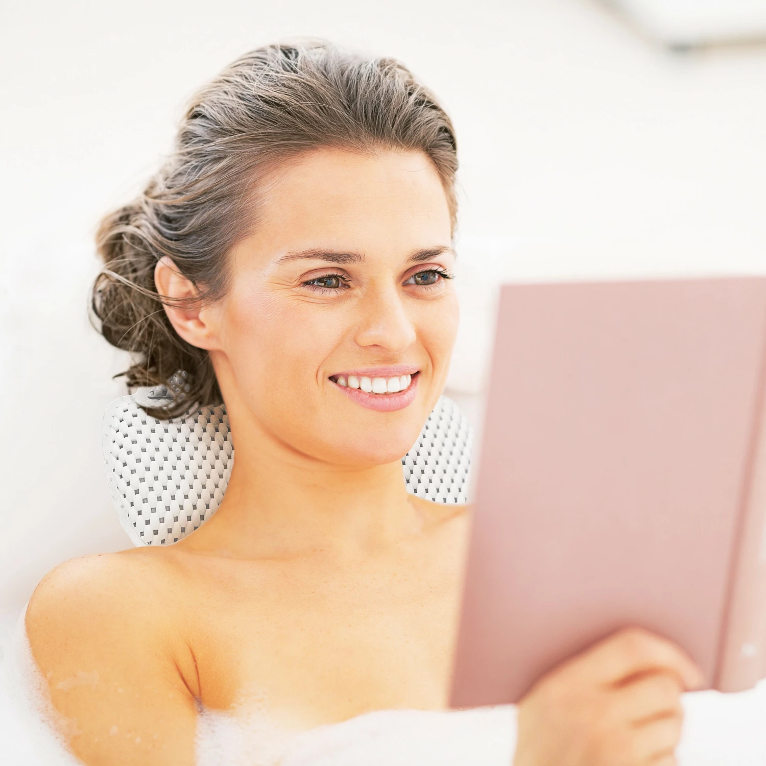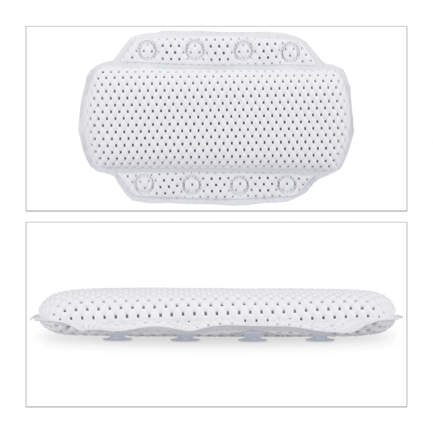 Wenn Sie mal wieder Ihre Wellness-Auszeit in der Badewanne in vollen Zügen genießen wollen, ist dieses Wannenkissen genau das Richtige für Sie. Legen Sie Ihren Kopf auf das weiche Nackenkissen anstatt auf den harten Badewannenrand. Der weiche Schaumstoff stützt dabei Ihren Kopf und nimmt Ihrem Nacken die Anspannung. Die 8 Saugnäpfe auf der Hinterseite des Badekissens sorgen für optimalen Halt. Somit können Sie Kraft für neue Aufgaben tanken und bei Bedarf auch Ihre Haare trocken halten.