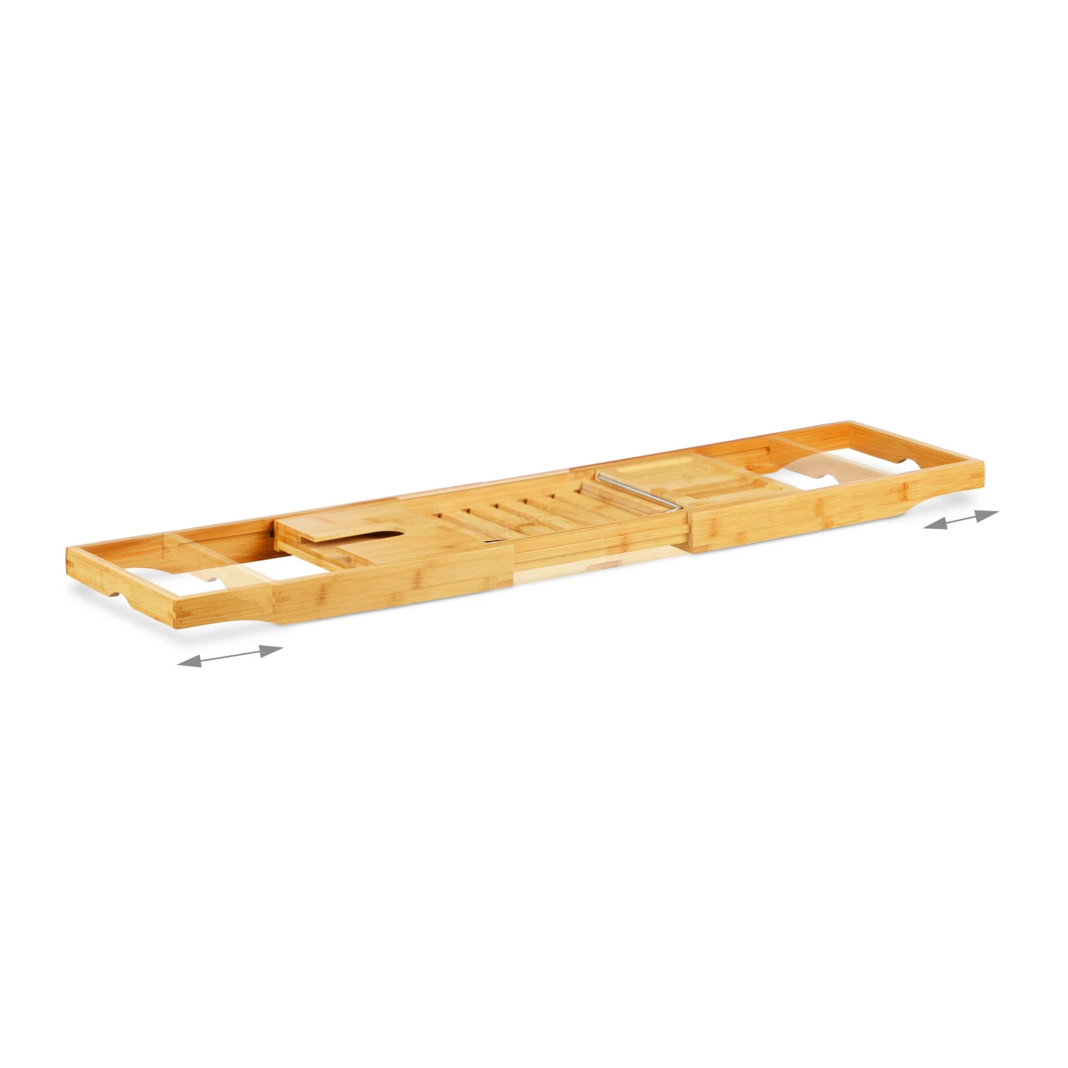Der Wannenaufsatz ist in der Breite ausziehbar und passt auf jede gängige Badewanne. Der verwendete Bambus überzeugt mit seiner schlichten Natürlichkeit und ist noch dazu sehr gut an eine feuchte Umgebung angepasst.