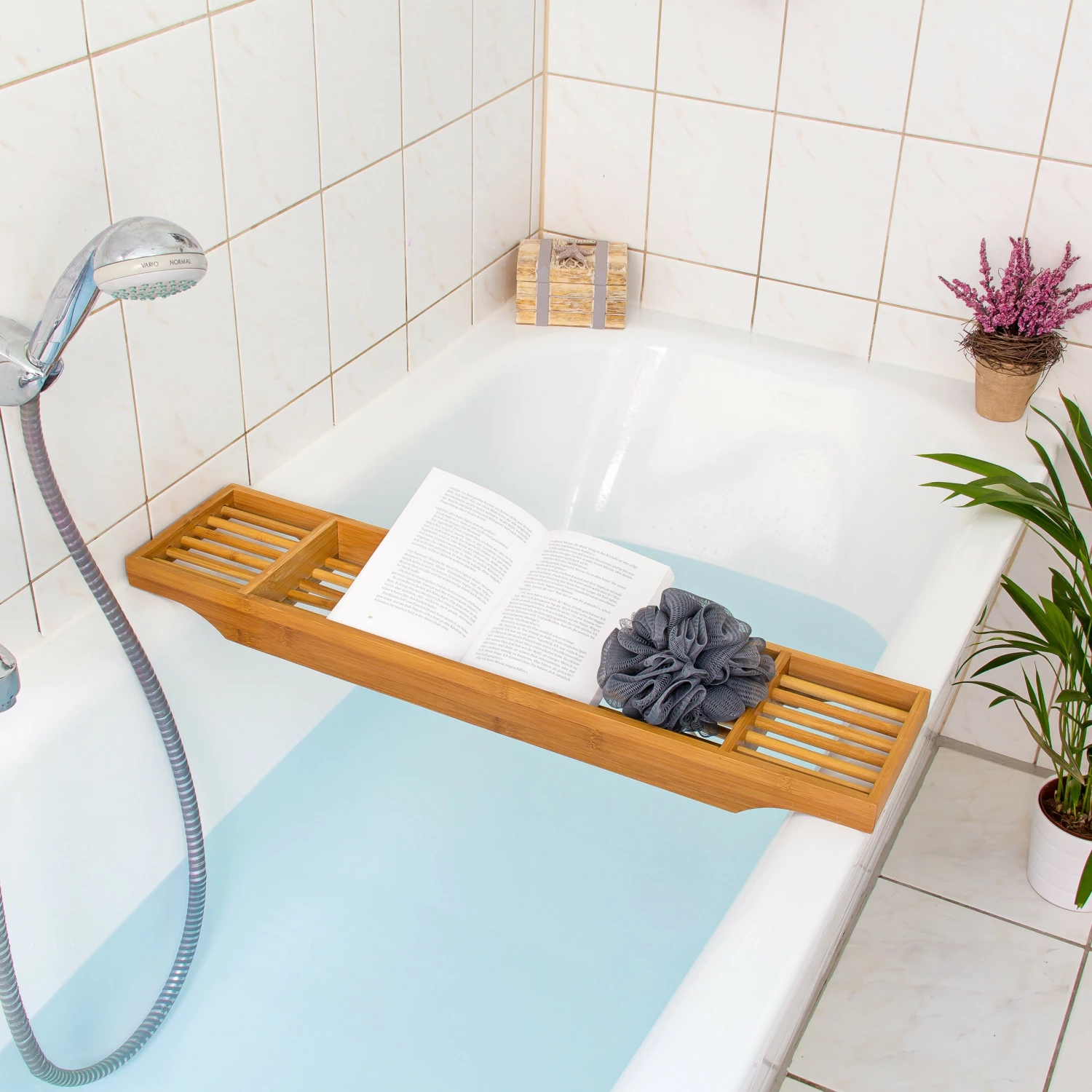 Genießen Sie ein Mehr an Komfort mit diesem praktischen und schön gestalteten Badewannenaufsatz aus Bambus. Er verfügt über 3 Fächer, die mit vielen nützlichen Badeutensilien wie Cremes, Seife oder Öl gefüllt werden können. Und auch wasserunverträgliche Dinge wie Süßigkeiten, Bücher oder das Mobiltelefon sind nun immer griffbereit, wenn Sie beim Baden entspannen.