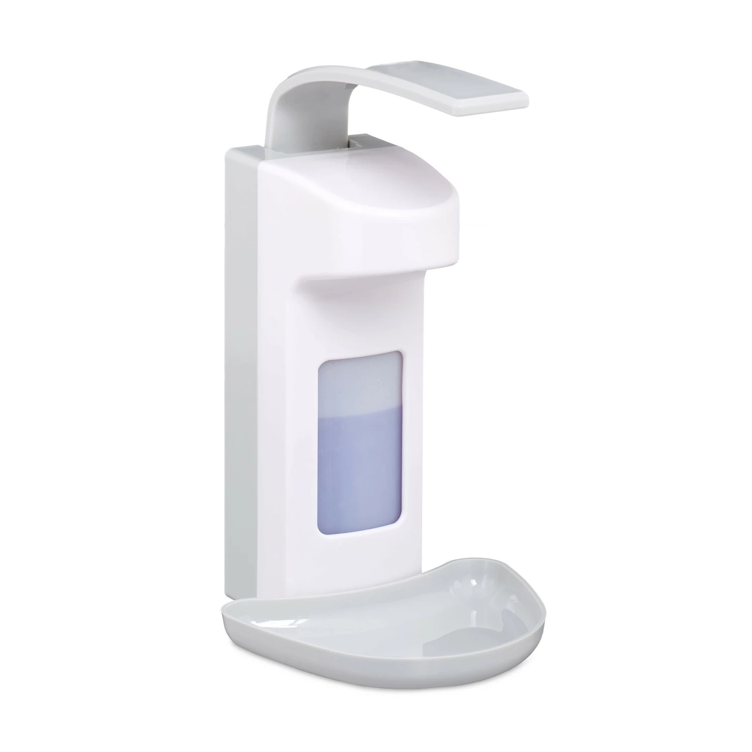 Mit diesem Desinfektionsspender sind Seife und Desinfektionsmittel für Ihre Gäste und Patienten stets griffbereit. Dank der Tropfschale bildet sich am Boden keine Pfütze aus schmieriger Seife, sondern sammelt überschüssige Seife sauber und hygienisch. In die Leerflasche des Eurospenders passen 500 ml Flüssigkeit, die mit dem Armhebel durch einen Pumpmechanismus genutzt werden können. Das Material für die Wandmontage ist inklusive – für eine schnelle und einfache Anbringung.