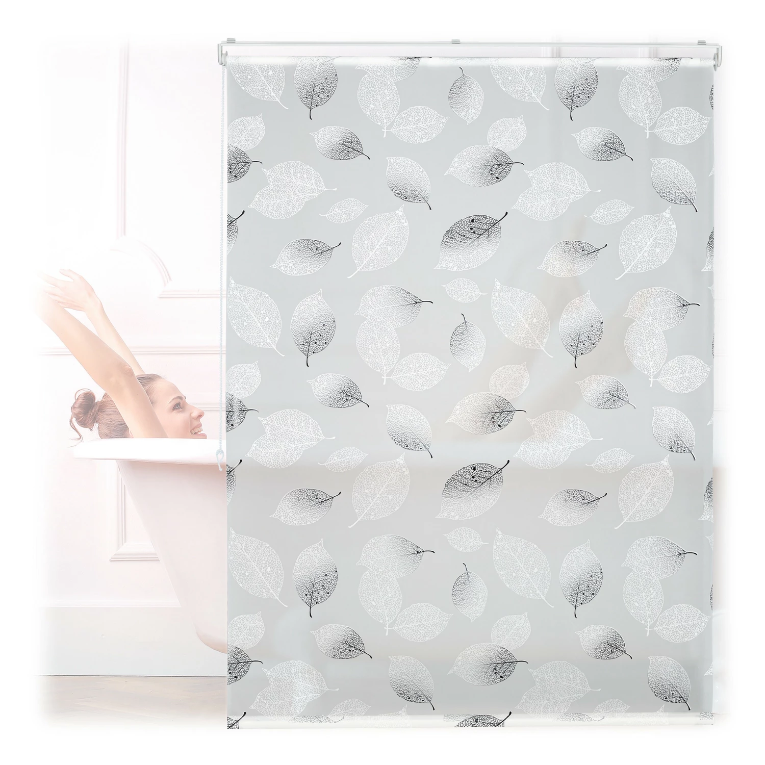 Mit diesem Badezimmerrollo holen Sie sich die moderne Alternative zum herkömmlichen Duschvorhang nach Hause. Das Badewannenrollo kann je nach Bedarf an der Decke befestigt oder an das Badfenster geklemmt werden. Das schnelltrocknende Seitenzugrollo verhindert Überschwemmungen im Bad und kann bei Nichtgebrauch platzsparend eingerollt werden. Dank verschiedener Größen ist für jede Nasszelle der passende Badewannenvorhang dabei. Optisch überzeugt das Rollo durch sein transluzentes Blätter Design.