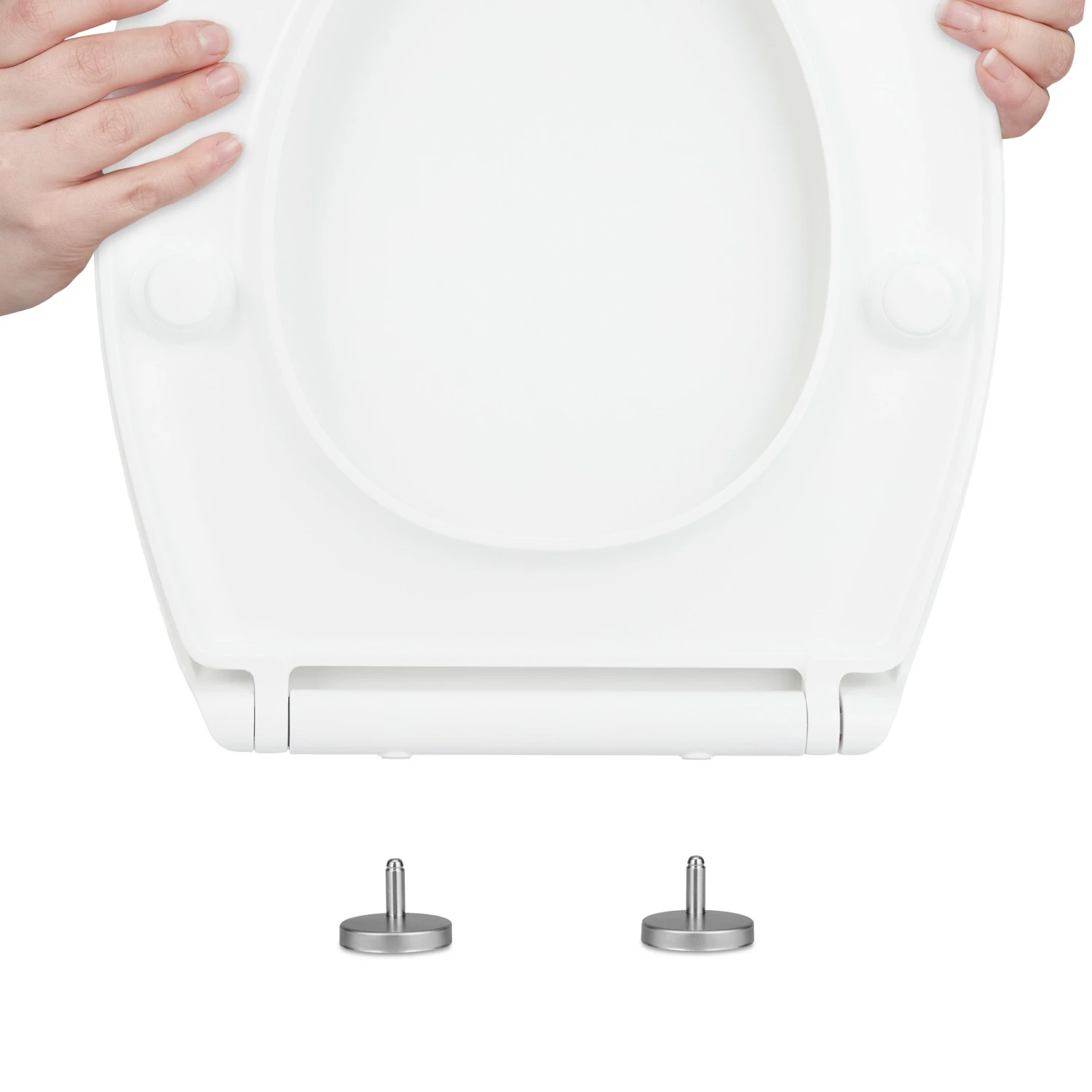 Aus hygienischen Gründen wird empfohlen den Toilettensitz alle paar Jahre zu wechseln. Dieser universelle WC Sitz passt auf alle gängigen Toiletten mit ovaler Form und wird mit Hilfe des mitgelieferten Montagematerials schnell und einfach wahlweise von oben oder unten am WC montiert. Die praktische Absenkautomatik sorgt dafür, dass sich der Deckel immer sanft schließt und nicht zuknallt. Zur Reinigung lassen sich Brille und Deckel mit nur einem Handgriff einfach von der Toilette abnehmen.