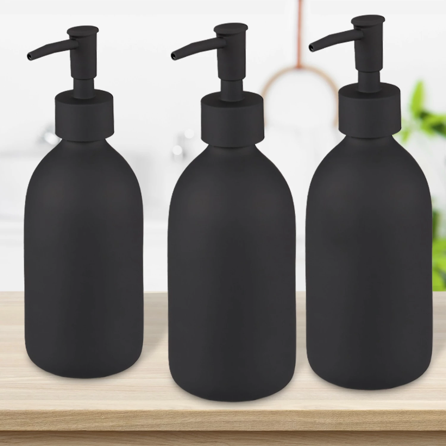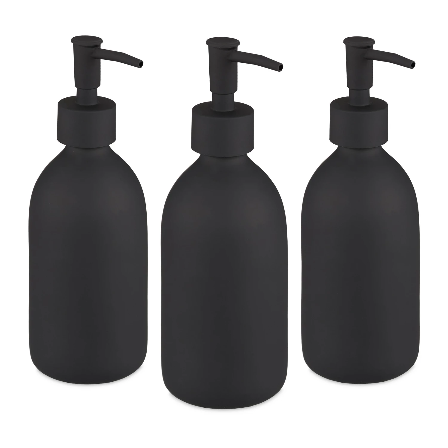 Die Seifenspender im 3er Set sind nicht nur dekorativ, sondern auch vielseitig in Bad, WC und Küche einsetzbar. Ob Seife, Lotion, Duschgel, Shampoo oder auch Spülmittel – mit den Pumpspendern lassen sie sich optimal dosieren. Wenn der Inhalt aufgebraucht ist, lassen sich die Seifendispenser durch Abschrauben der Pumpvorrichtung einfach neu befüllen. Der Spender überzeugt dabei mit seinem modernen Design in Schwarz und der ansprechenden Haptik durch die Soft-Touch Oberfläche.