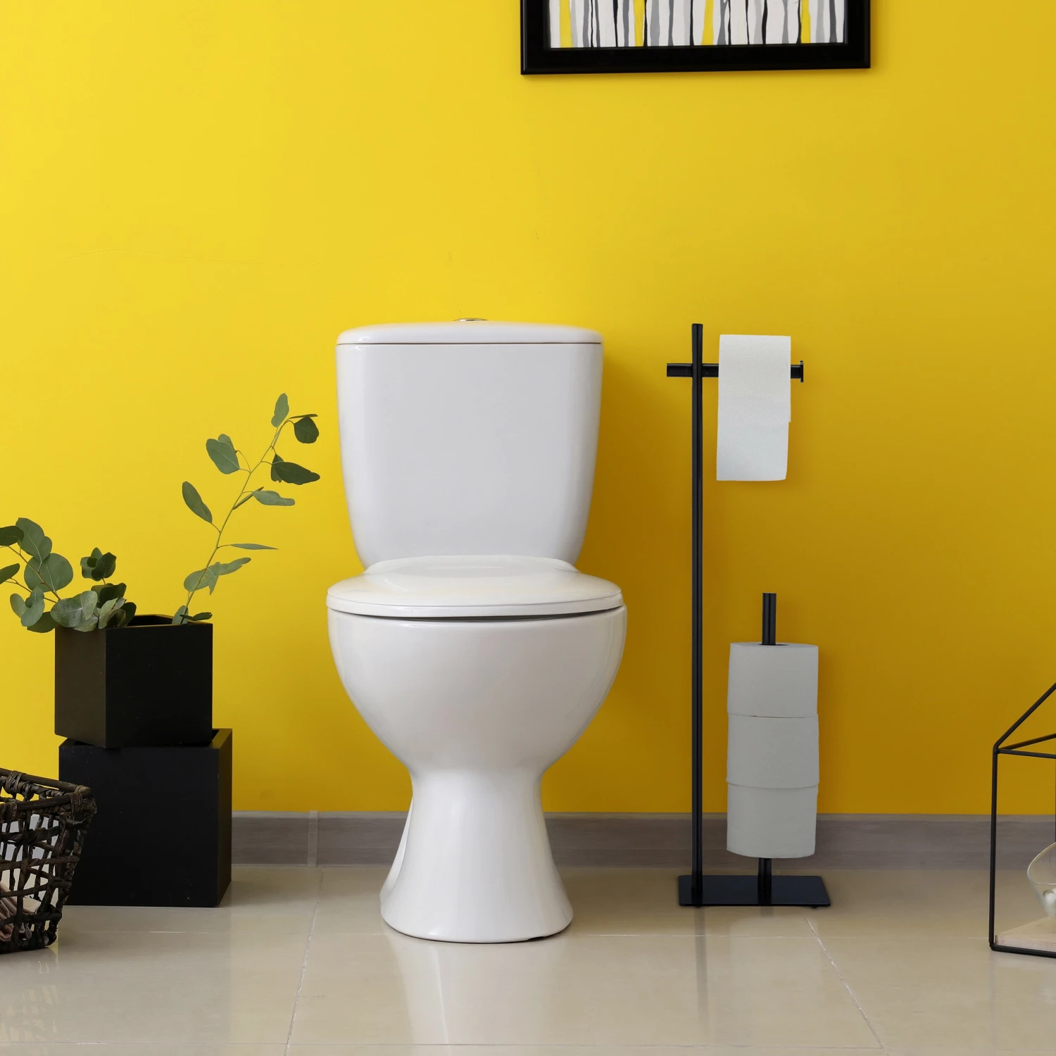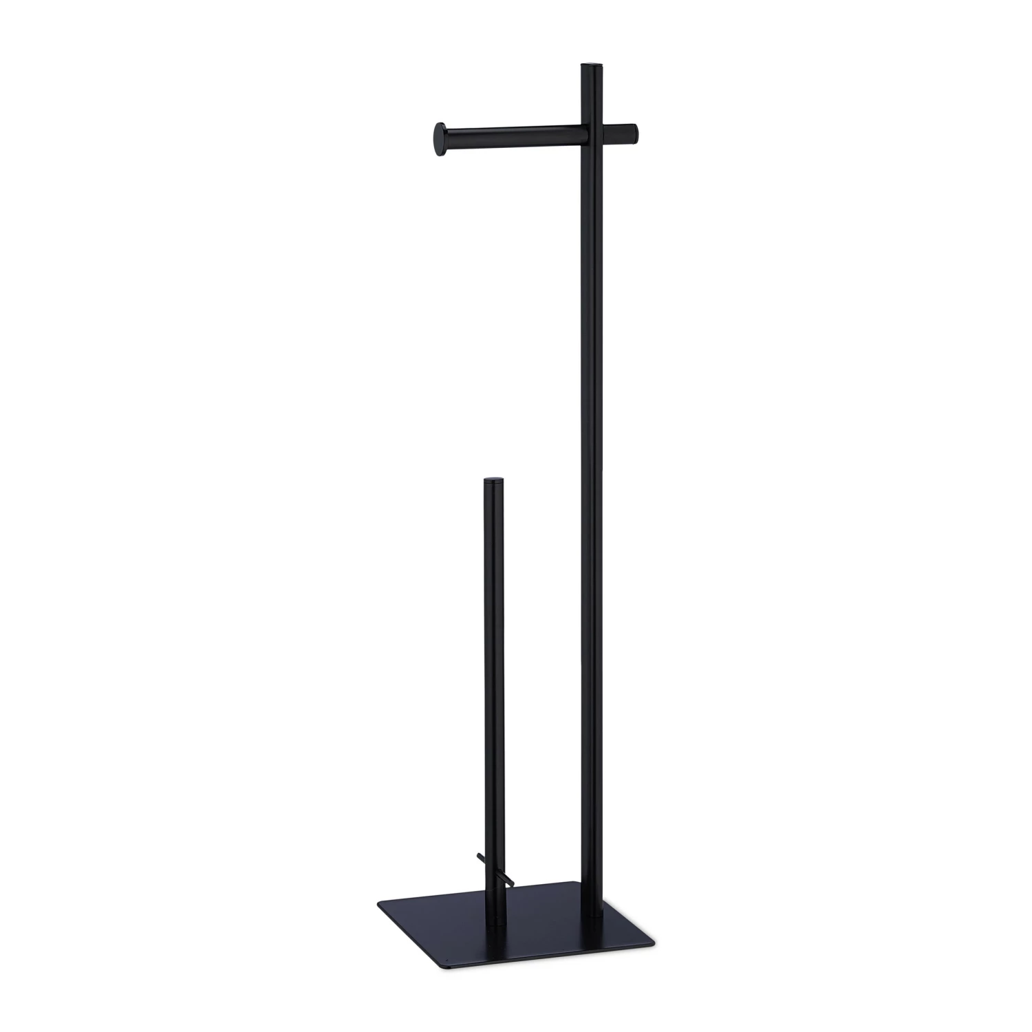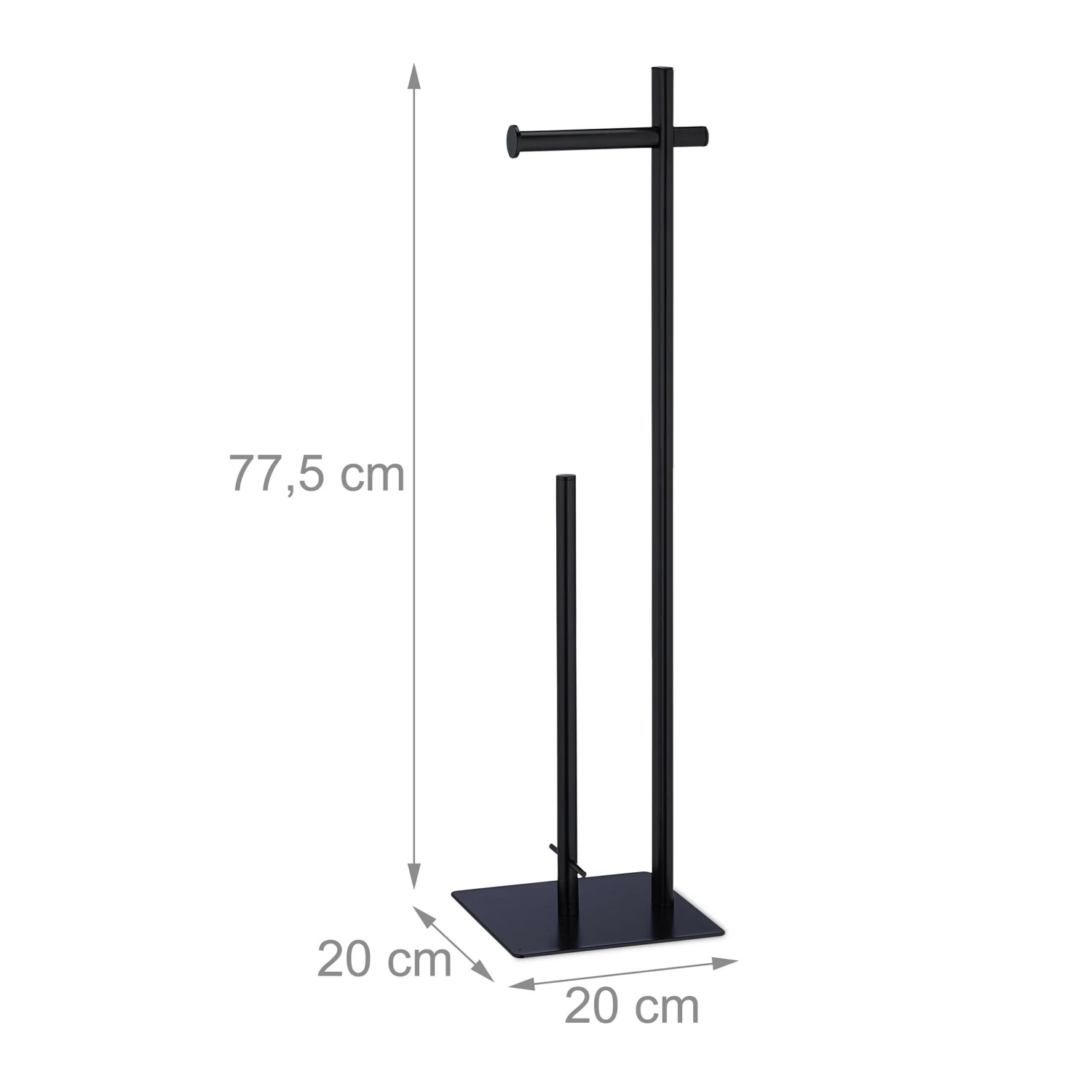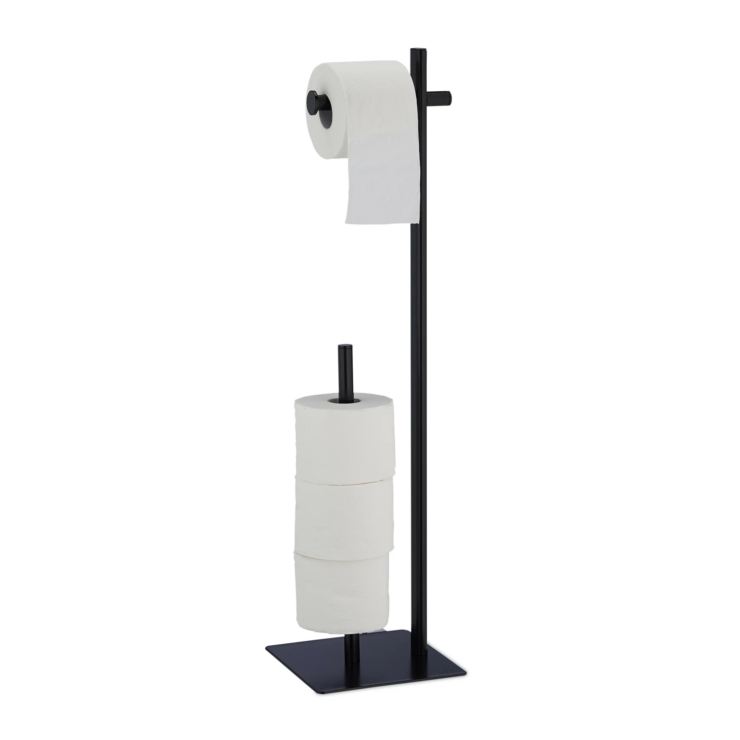Mit diesem Toilettenpapierhalter hast Du das Toilettenpapier immer griffbereit. Und auch die Toilettenpapierreserve wird gleich mit aufbewahrt. Auf der langen Stange der Klopapierhalterung haben bis zu vier weitere Rollen Platz und der Ärger des fehlenden Toilettenpapiers auf dem WC gehört der Vergangenheit an. Das glänzende, schwarze Design fügt sich zudem unkompliziert in jedes Badezimmer oder Gäste-WC ein. Dank der vier mitgelieferten Gumminoppen wird Dein Boden vor Kratzern geschützt.