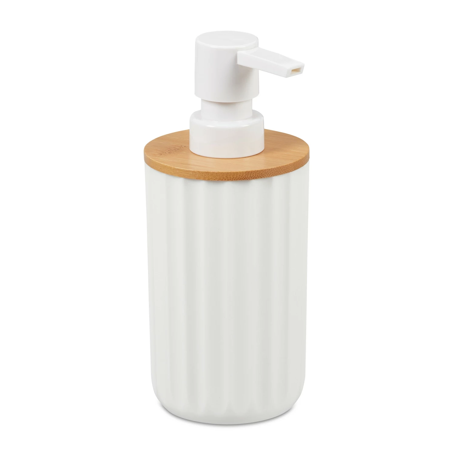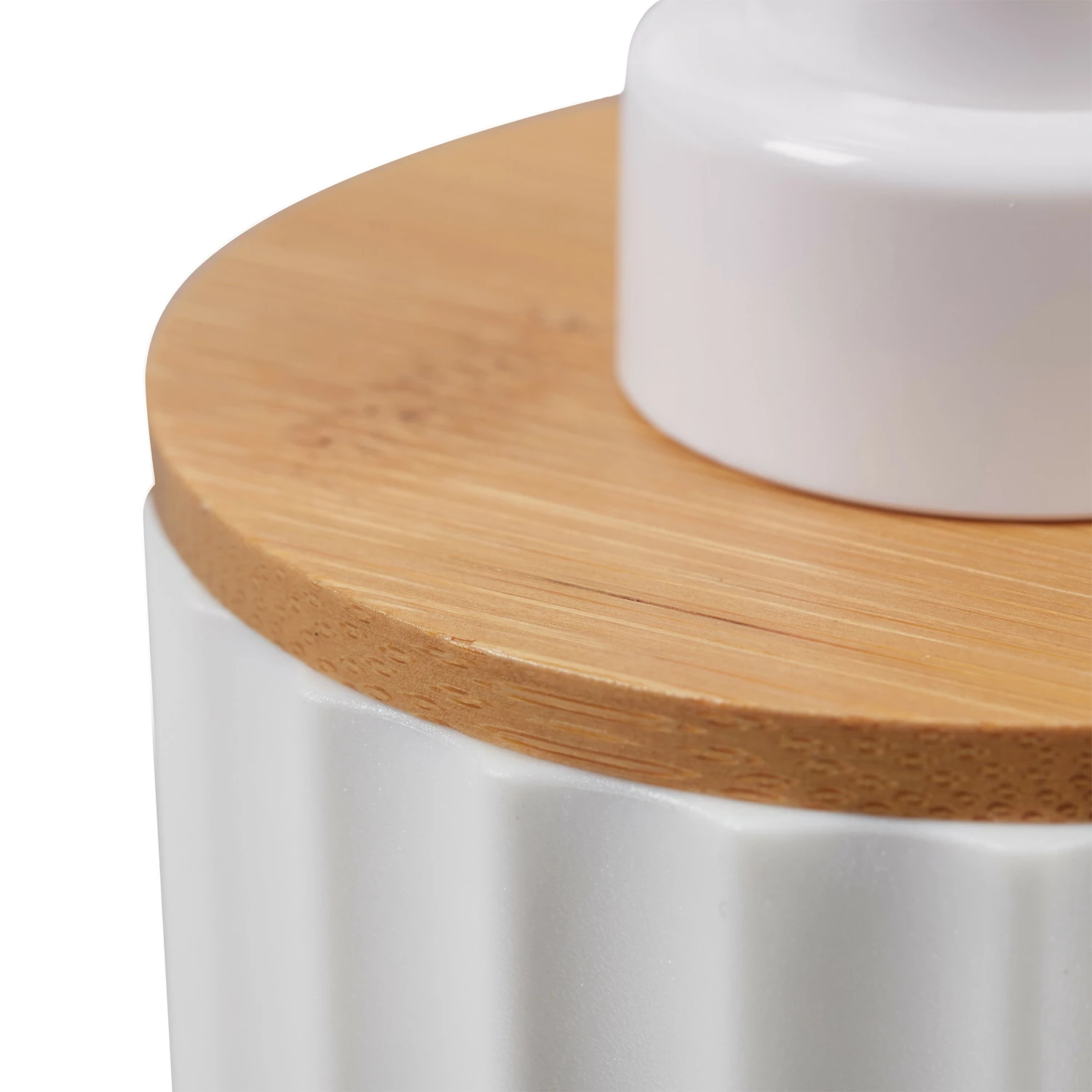 – Weißer, geriffelter Behälter mit Bambus Akzent