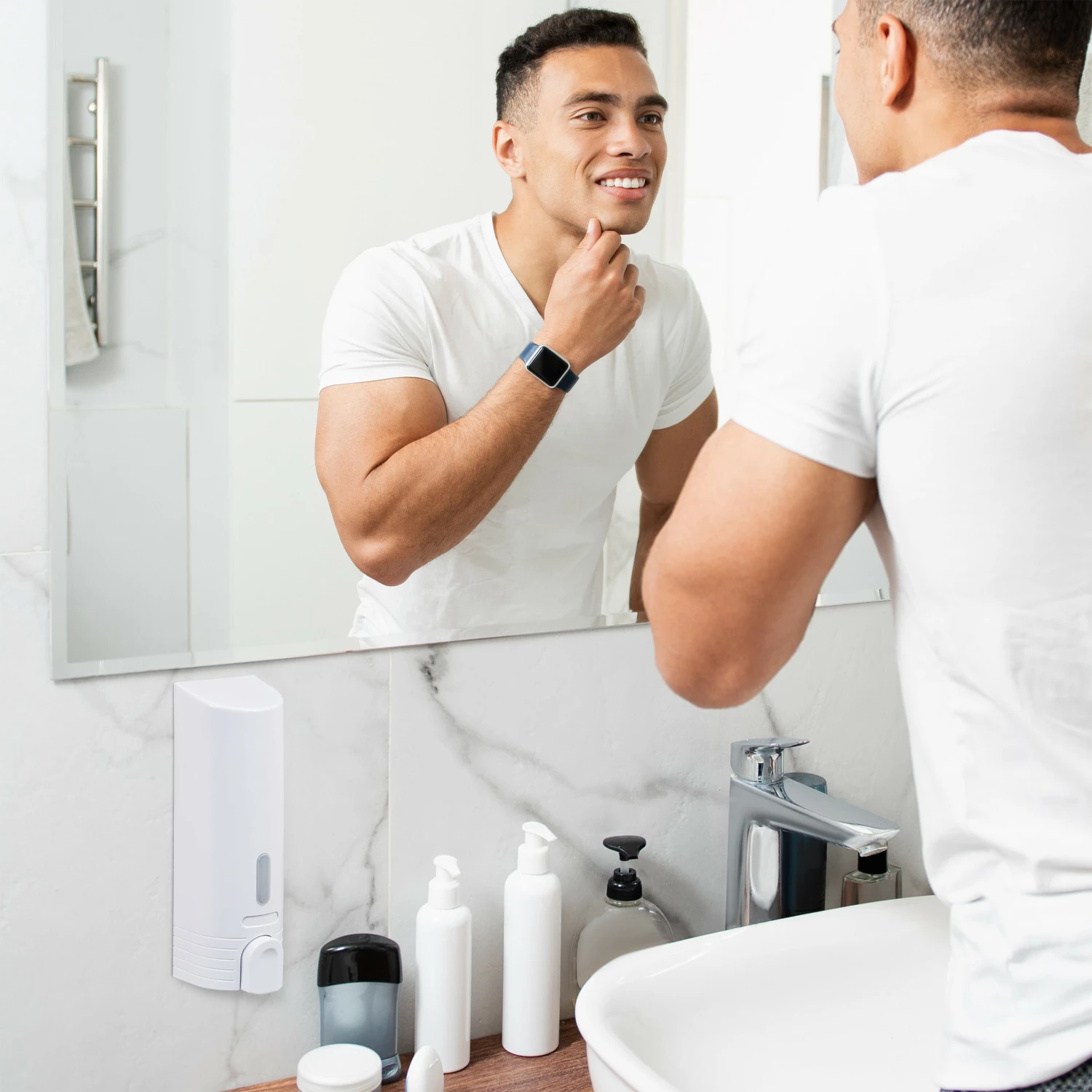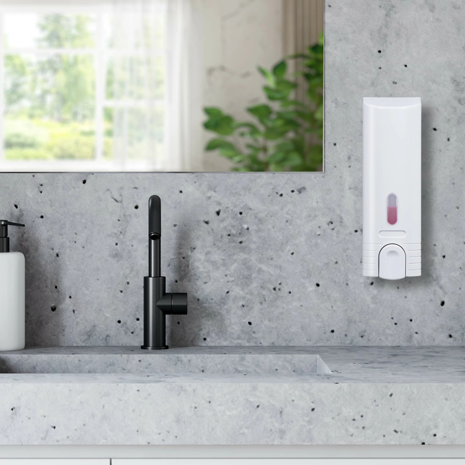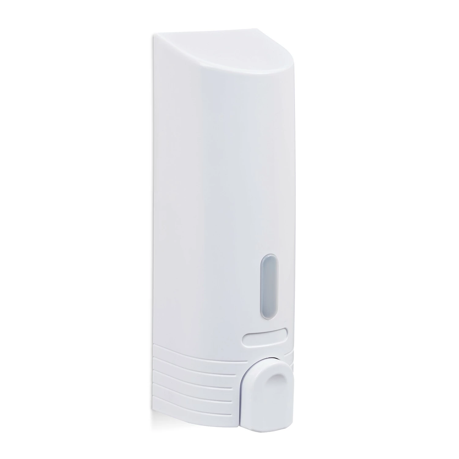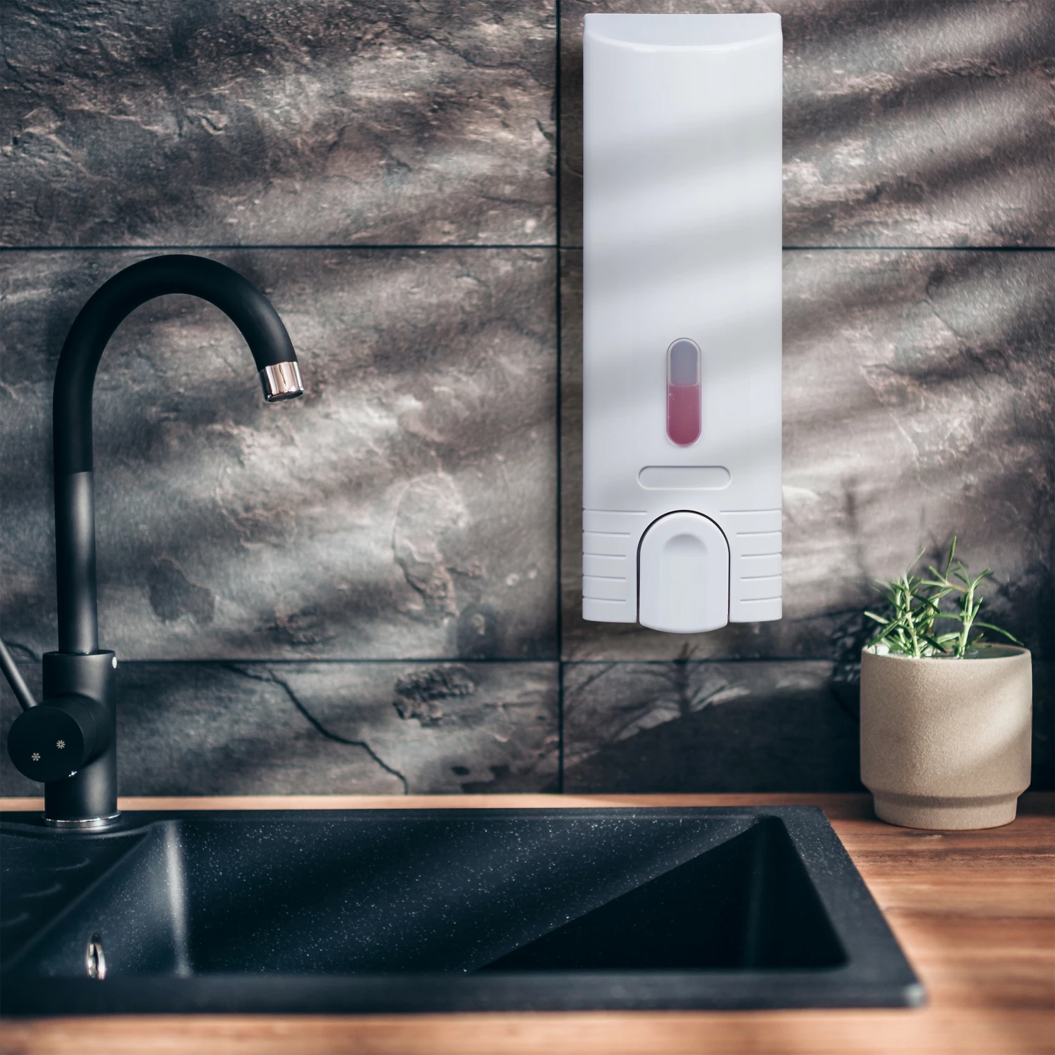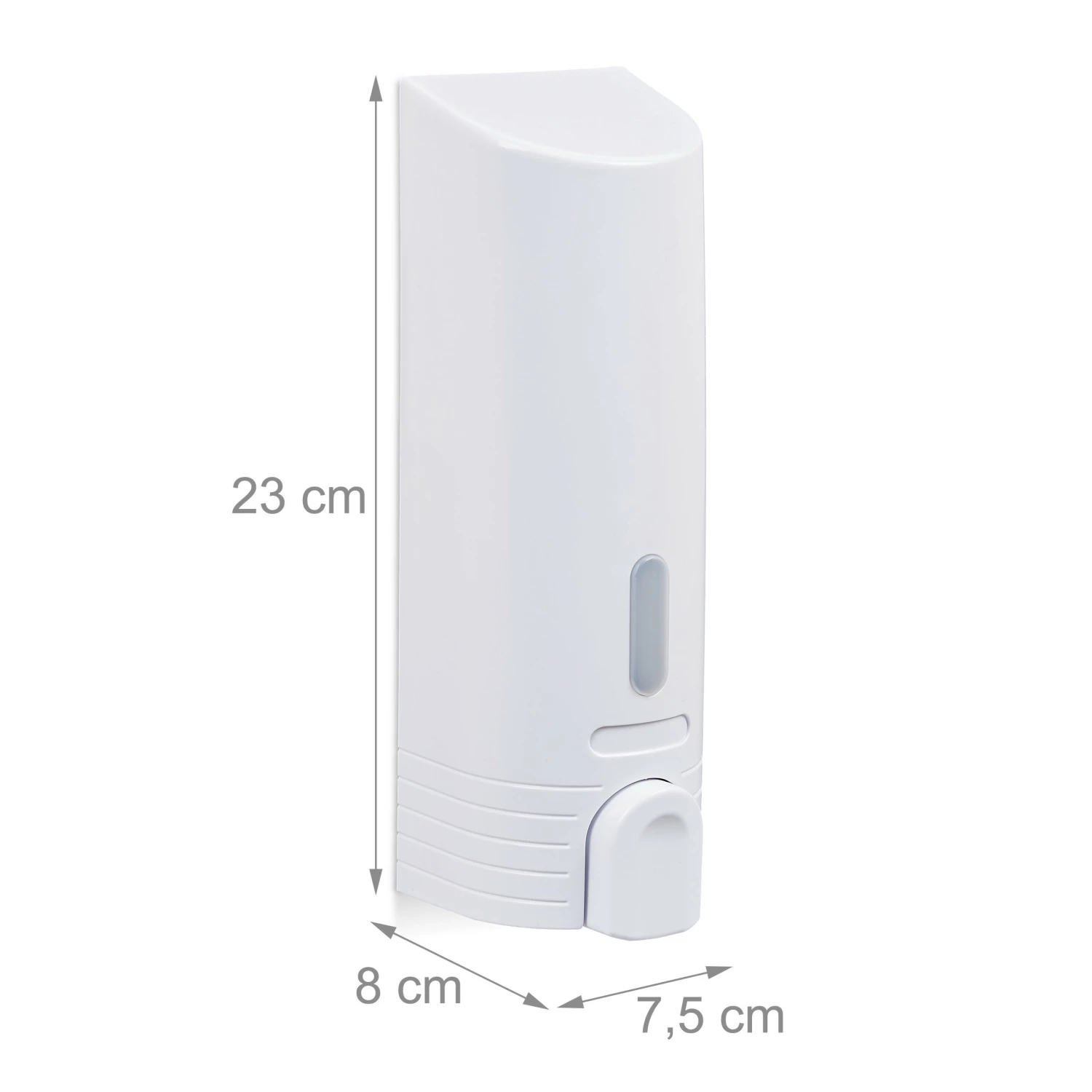 Mit dem Wandseifenspender haben Sie keine Platzprobleme mehr auf Ihrem Waschbecken. Nutzen Sie den manuellen Seifendosierer im Bad für Flüssigseife, in der Dusche für Duschgel und Shampoo oder in der Küche für Spülmittel. Dank der beschrifteten Klebeetiketten wissen Sie immer über den Inhalt Bescheid. Zum Befüllen klappen Sie einfach die Abdeckung hoch, entnehmen den Seifenbehälter und geben Ihre duftende Lieblingsseife hinein.