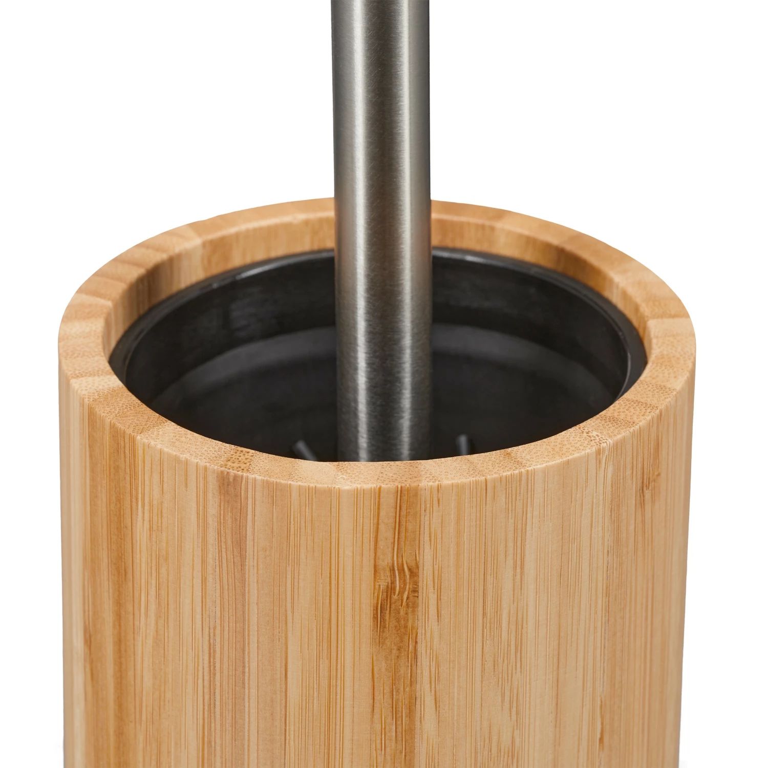 Diese Bürstengarnitur fügt sich wunderbar ins Bad oder Gäste-WC ein. Der Klobürstenhalter aus Bambus sorgt in Kombination mit dem Edelstahlgriff der Toilettenbürste für einen modernen Materialmix. Das Silikon-Material des Bürstenkopfes wirkt schmutzabweisend, sodass keine Reste oder Toilettenpapier an der Klobürste hängen bleiben. Die flexiblen Borsten sorgen für eine gründliche Reinigung und eine hygienisch saubere Toilette. Zudem verfügt die WC-Bürste über einen austauschbaren Bürstenkopf.