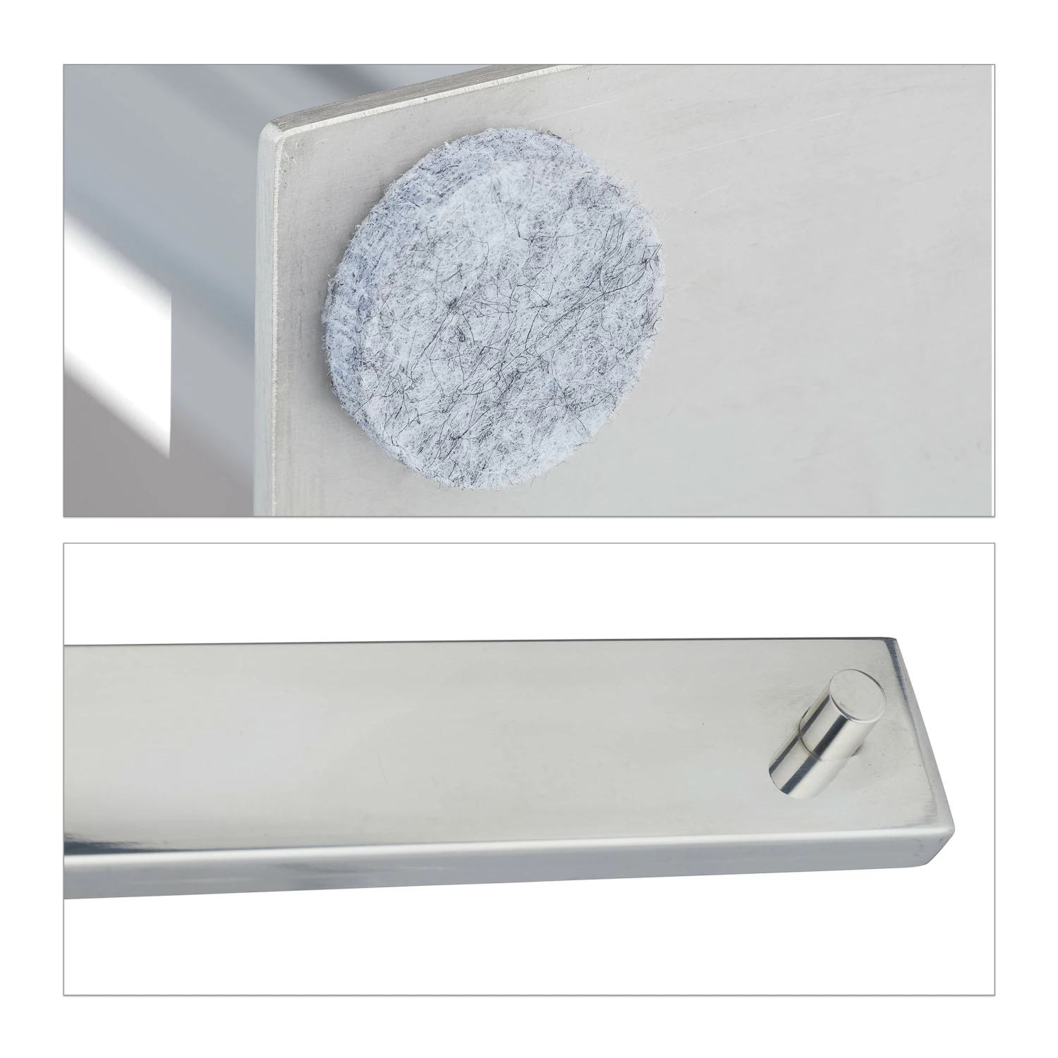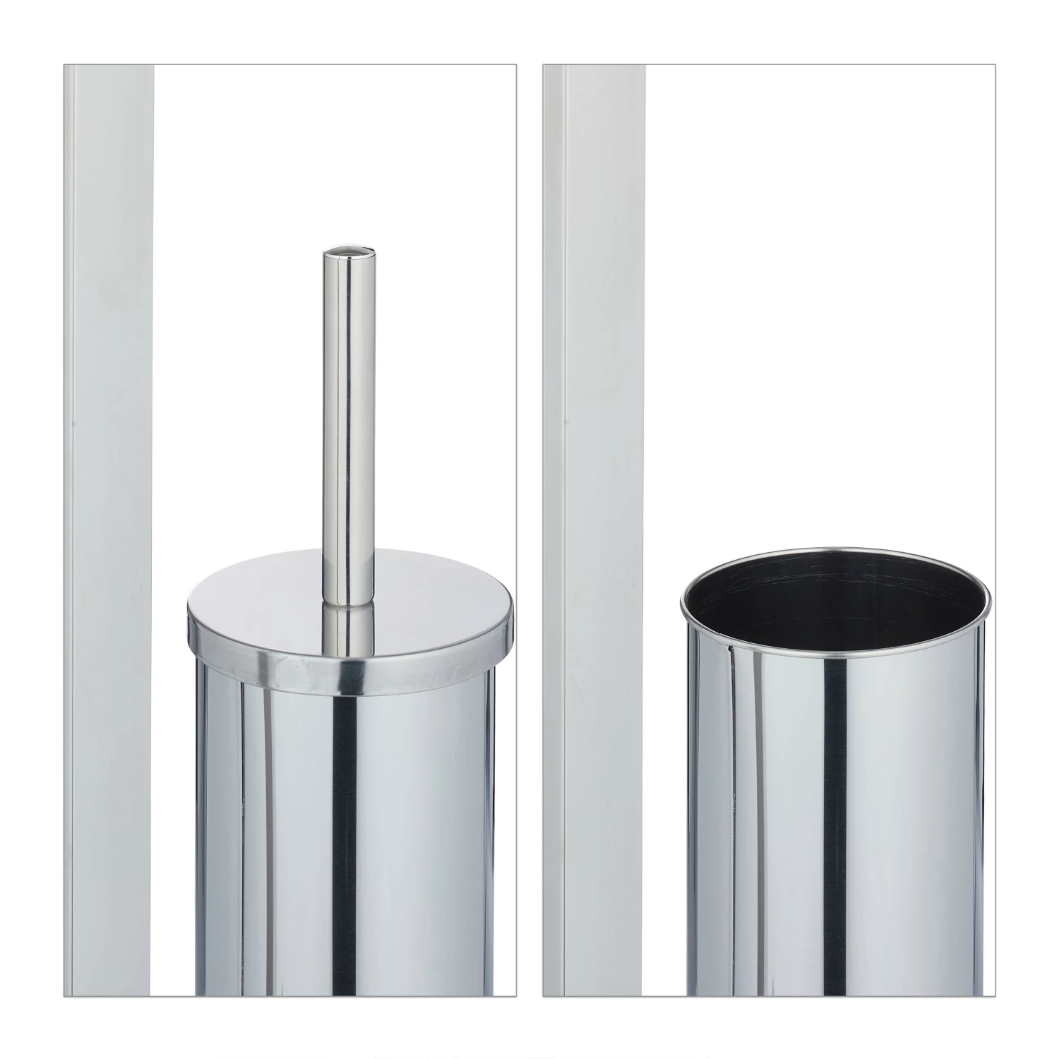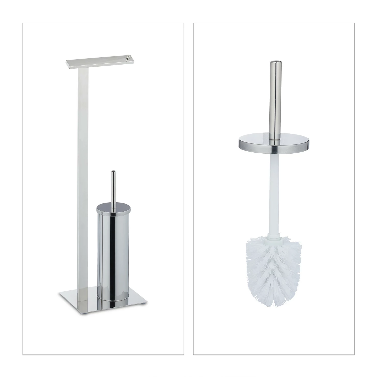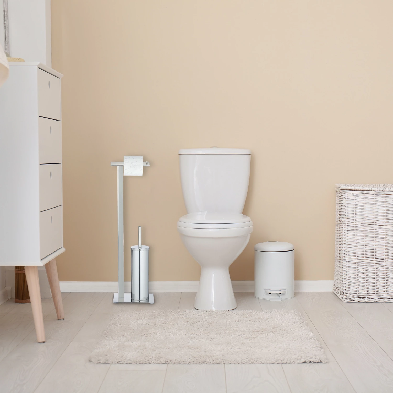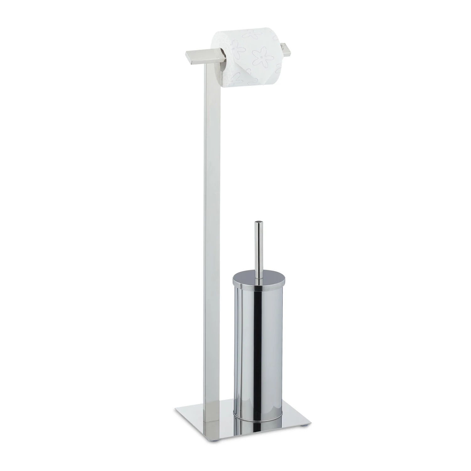 Mit diesem schicken Toilettenbutler hast Du Klopapier und Toilettenbürste immer griffbereit. Egal, ob im Badezimmer oder Gäste-WC, die freistehende Stand WC Garnitur kann flexibel platziert und muss nicht an der Wand befestigt werden. Das moderne glänzende Design des Toilettenständers aus Edelstahl wird zum tollen Hingucker im Bad. Für die nötige Hygiene sorgen der austauschbare Bürstenkopf und der entnehmbare Bürstenbehälter aus Kunststoff.