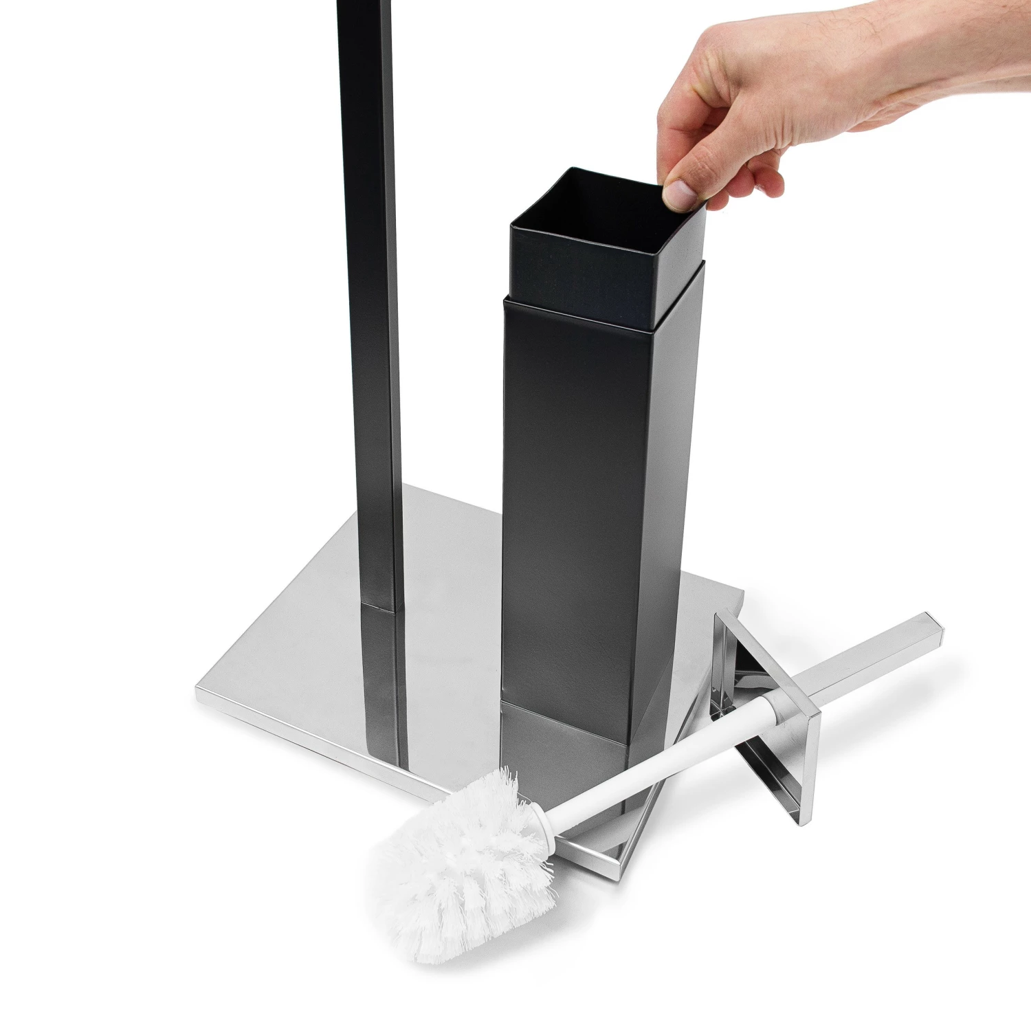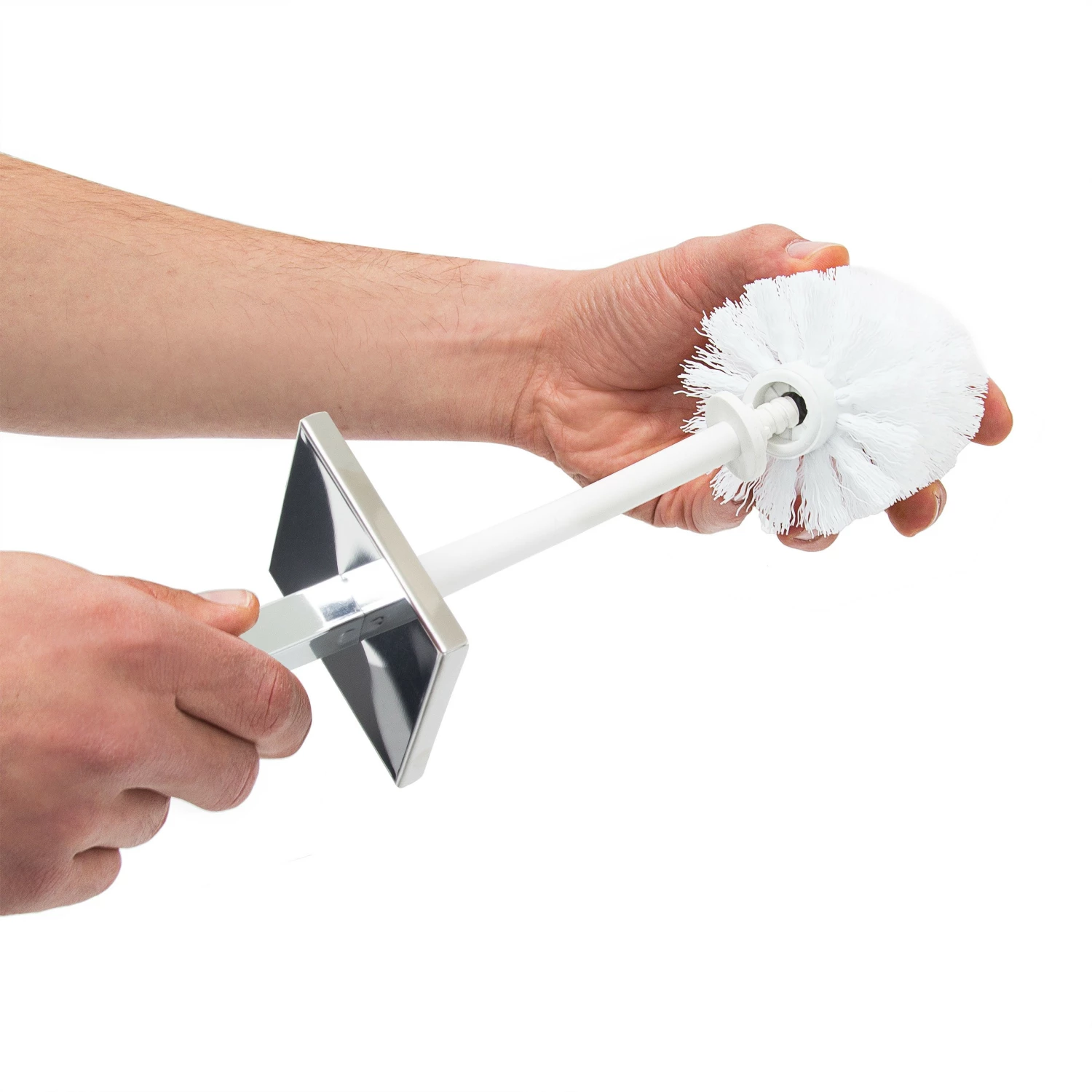 Die WC-Bürste verfügt über einen Griff und eine Abdeckung aus verchromtem Stahl. Zudem ist sie mit einem austauschbaren Bürstenkopf aus Kunststoff versehen. Der Bürstenhalter selbst ist vollständig von einem Kunststoff-Behälter ausgekleidet, der zur hygienischen Reinigung leicht entnommen werden kann.