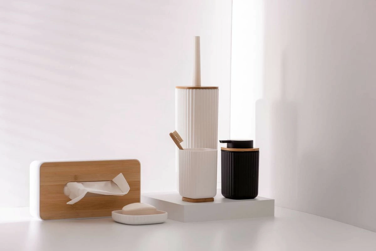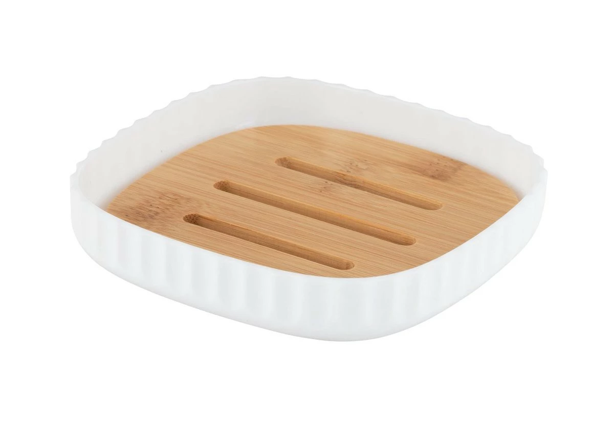- Zweifarbige Versionen. ROTELLO Seifenschale ist in zwei Farben erhältlich: Weiß und Schwarz. Beide Farben harmonieren gleich gut mit dem Hellbraun des Bambus-Pads.