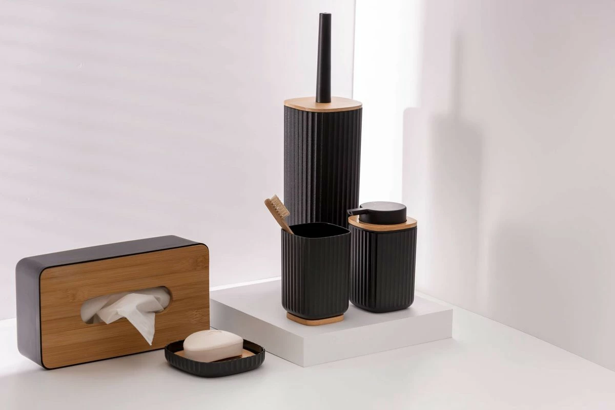 - Feuchtigkeitsbeständiges Material. Lackierte Bambus-Substrate und Kunststoffbehälter sind feuchtigkeitsbeständig. Dadurch werden die Elemente der Seifenschale bei häufigem Gebrauch nicht verzerrt.