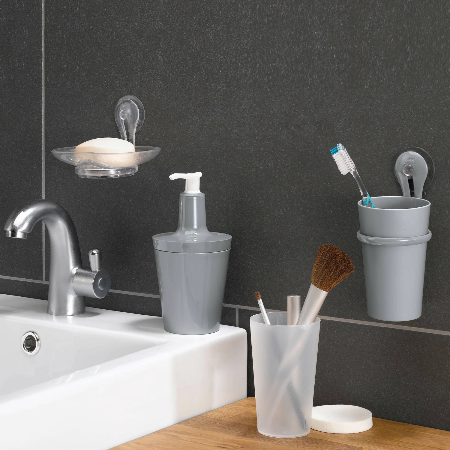 Die ovale Seifenschale ist in dem Halterungsring nur eingehängt und kann mühelos heraus genommen werden. Zusammen mit dem LOOP Zahnputzbecher einfach das perfekte Duo für jedes Bad.