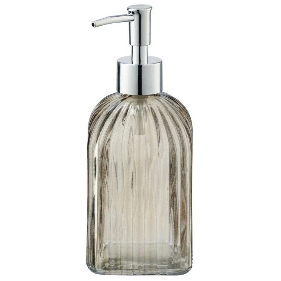 Der Behälter kann bequem geöffnet werden, um die Seife aufzufüllen, indem er seinen oberen Teil herunterzieht. VETRO Flüssigseifenspender hat eine transparente graue Farbe, die sowohl in modernen als auch traditionellen Badezimmern sehr gut aussehen wird. Der flache, glatte Boden sorgt dafür, dass der Behälter nicht auf der Spüle rutscht, noch hinterlässt er Spuren und Kratzer auf der Oberfläche.