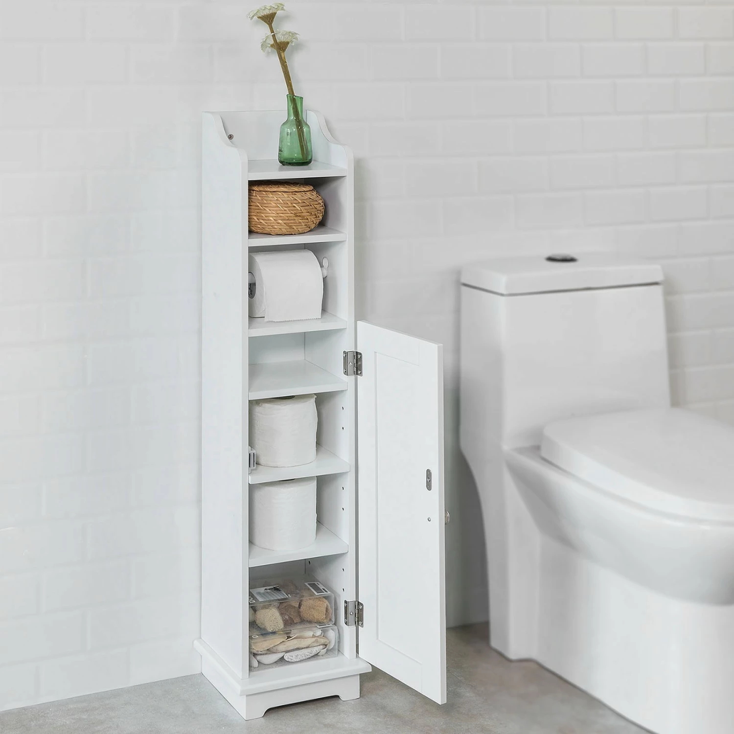 - Praktischer Schrank zur Aufbewahrung von Toilettenpapier, Reinigungsmittel oder Toilettenbürste