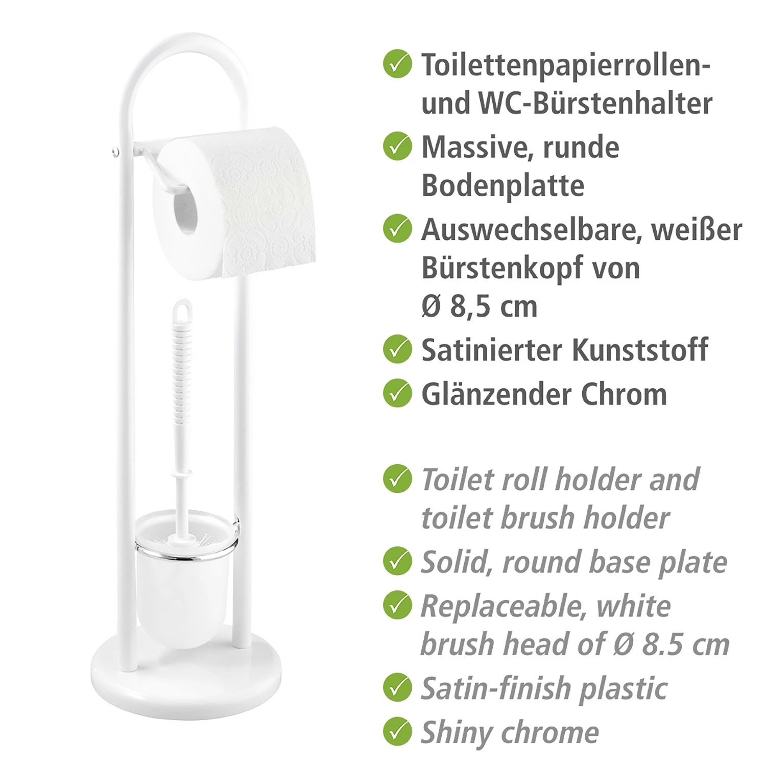 - Weitere Maße: WC-Bürste: Ø 8,5 cm