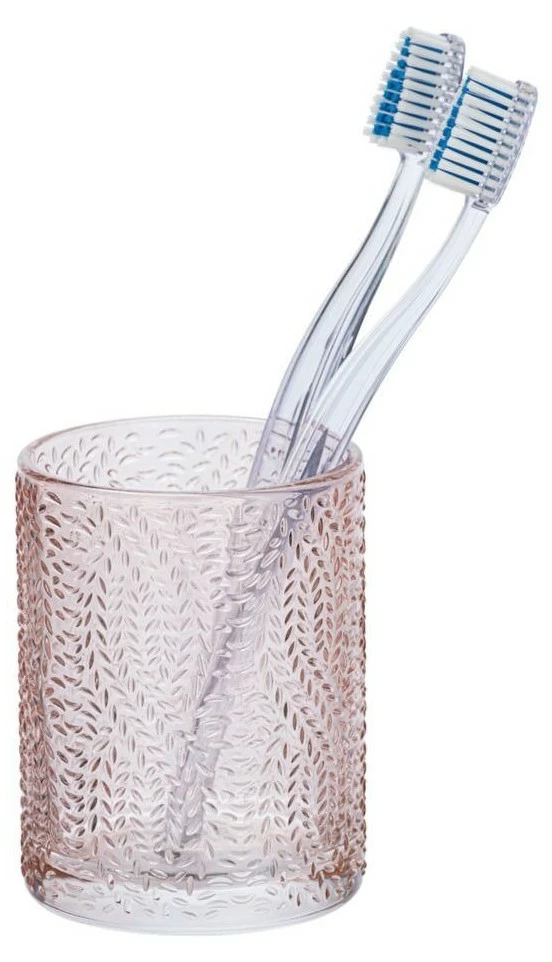 Die moderne Badserie VETRO in gedämpften und kräftigen Farben basiert auf einer harmonischen Kombination aus Aussehen, Berührung und Funktionalität. In leuchtend rosa Farbe und mit stempelenden kleinen Blättern auf der Oberfläche können Sie in jedem Bad und Gäste-WC eine Reihe von VETRO-Badezimmeraccessoires genießen. Verwenden Sie eine praktische Tasse zum Aufbewahren von Elektrobürsten, Handzahnpasta oder Make-up-Pinseln und Zubehör!