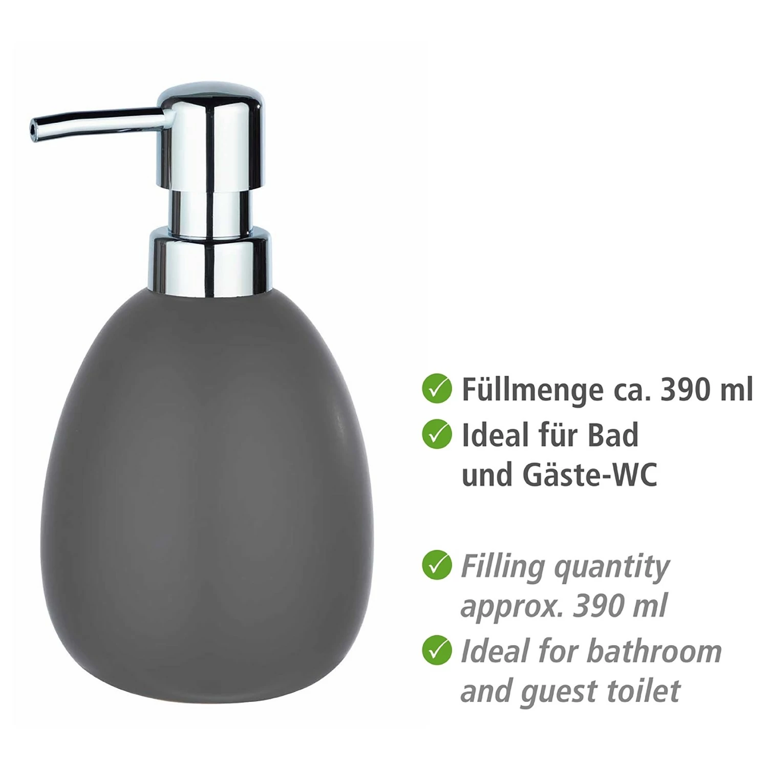 - Seifenspender (B x H x T): 10 x 16,5 x 9,4 cm; Füllmenge 390 ml.