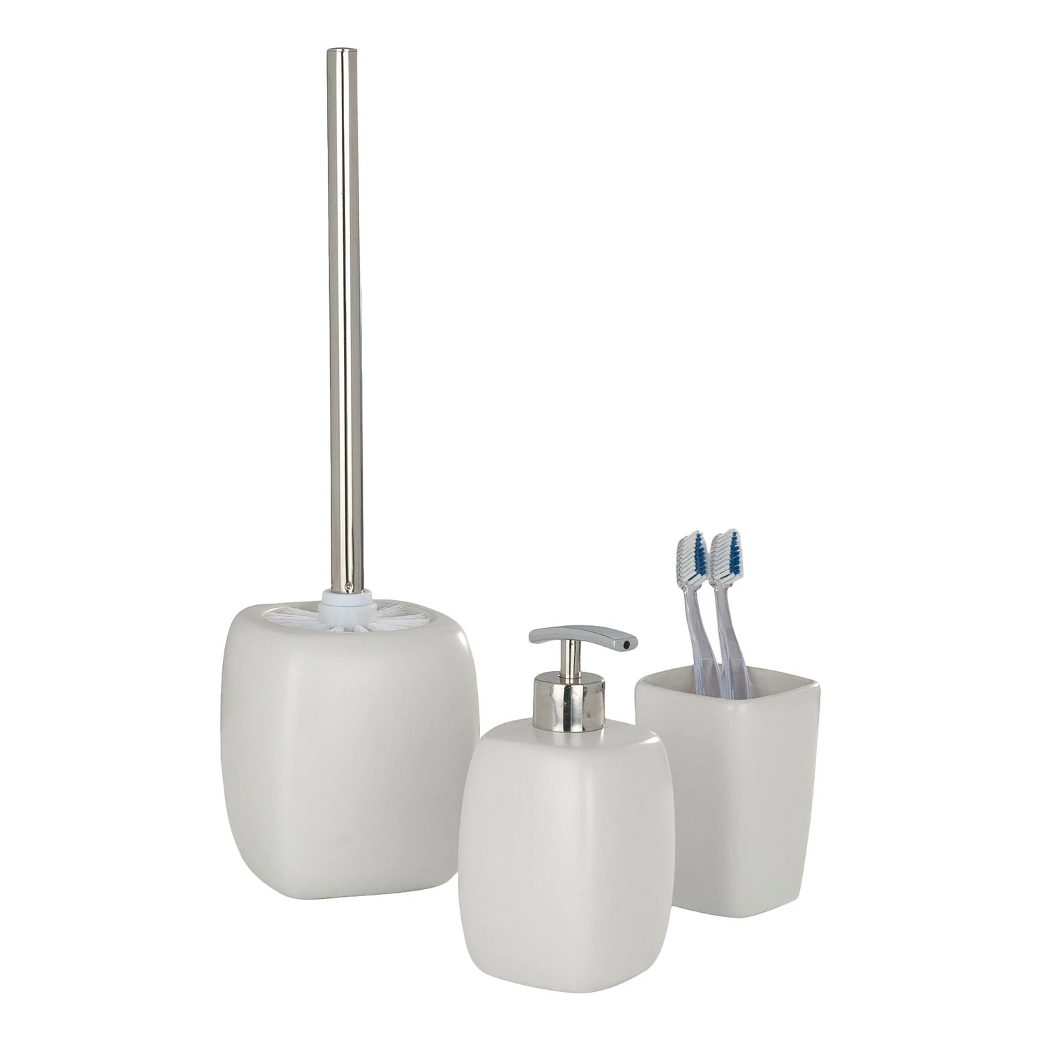 - Lieferumfang: WC-Garnitur, WC-Bürste, Seifenspender, Zahnputzbecher