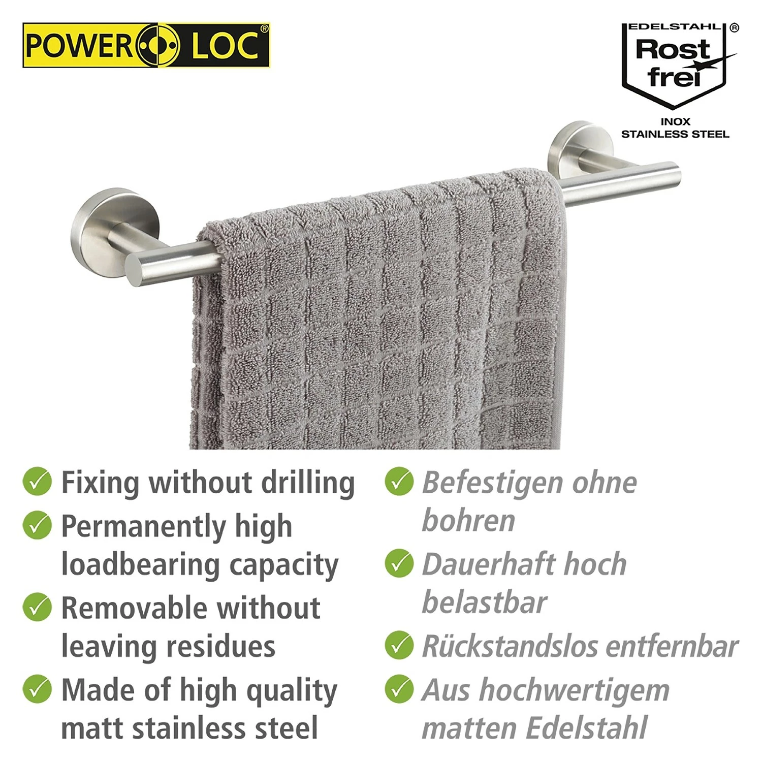 - Lieferumfang: Handtuchstange, Schrauben und Dübel