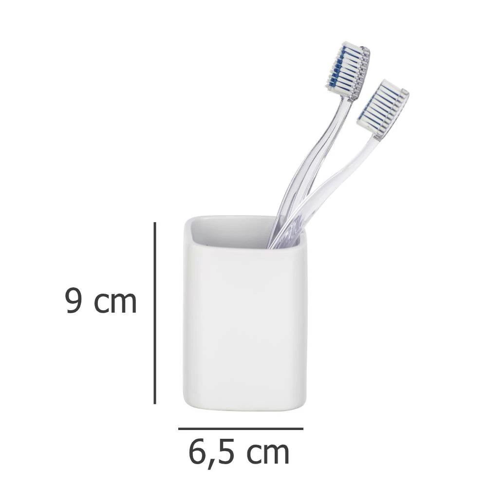 Hexa ist eine Zahnputzbecher mit einem modernen Design, das sicherlichin jedem Badezimmer nützlich sein wird! Wenn Sie ein Fan von minimalistischen Innenräumen sind und sich am besten fühlen, wenn Sie von funktionalen Objekten mit einfachem Design umgeben sind, wird Hexas mu g für die Aufbewahrung von Zahnbürsten und Zahnpasta sicherlich Ihren Geschmack sein. Legen Sie es in der Nähe der Scheiben, so dass während der Morgen- und Abendpflege für ein gesundes Lächeln alle Haushaltsmitglieder leicht zugänglich sind. Hexa Becher wurde für Benutzer entwickelt, die eine Kombination ausEinfachheit und Funktionalität schätzen. Das Produkt ist aus hochwertiger Keramik in klassischem Weiß gefertigt. Der 6,5 x 9 x 6,5 cm Zahnpasta-Aufbewahrungsbehälter für Zahnbürsten und Rohr zahnpasta passt perfekt zu anderen Badaccessoires aus der gleichen Serie.
