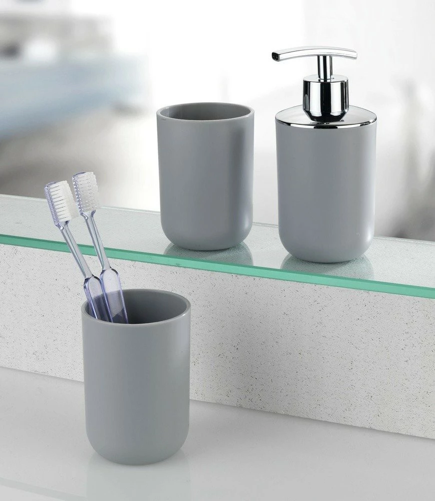 Zahnbürstenhalter aus der BRASIL Zubehörserie. Es eignet sich auch gut zum Aufbewahren von Pasten, Kosmetika und anderen Badezimmeraccessoires. Das elegante Design passt perfekt in moderne und nicht-moderne Bäder. Hergestellt aus hochwertigem, unzerbrechlichem Kunststoff.