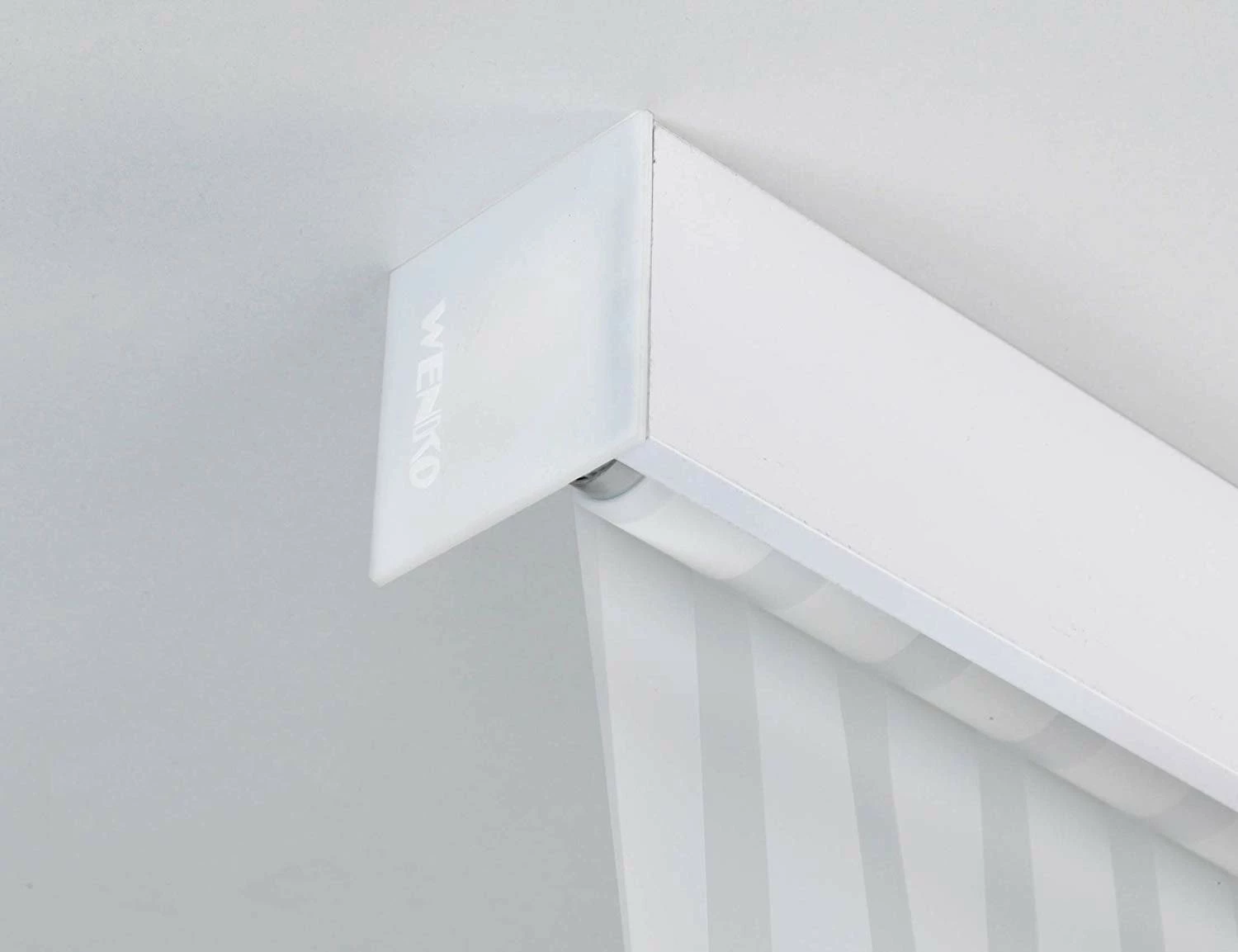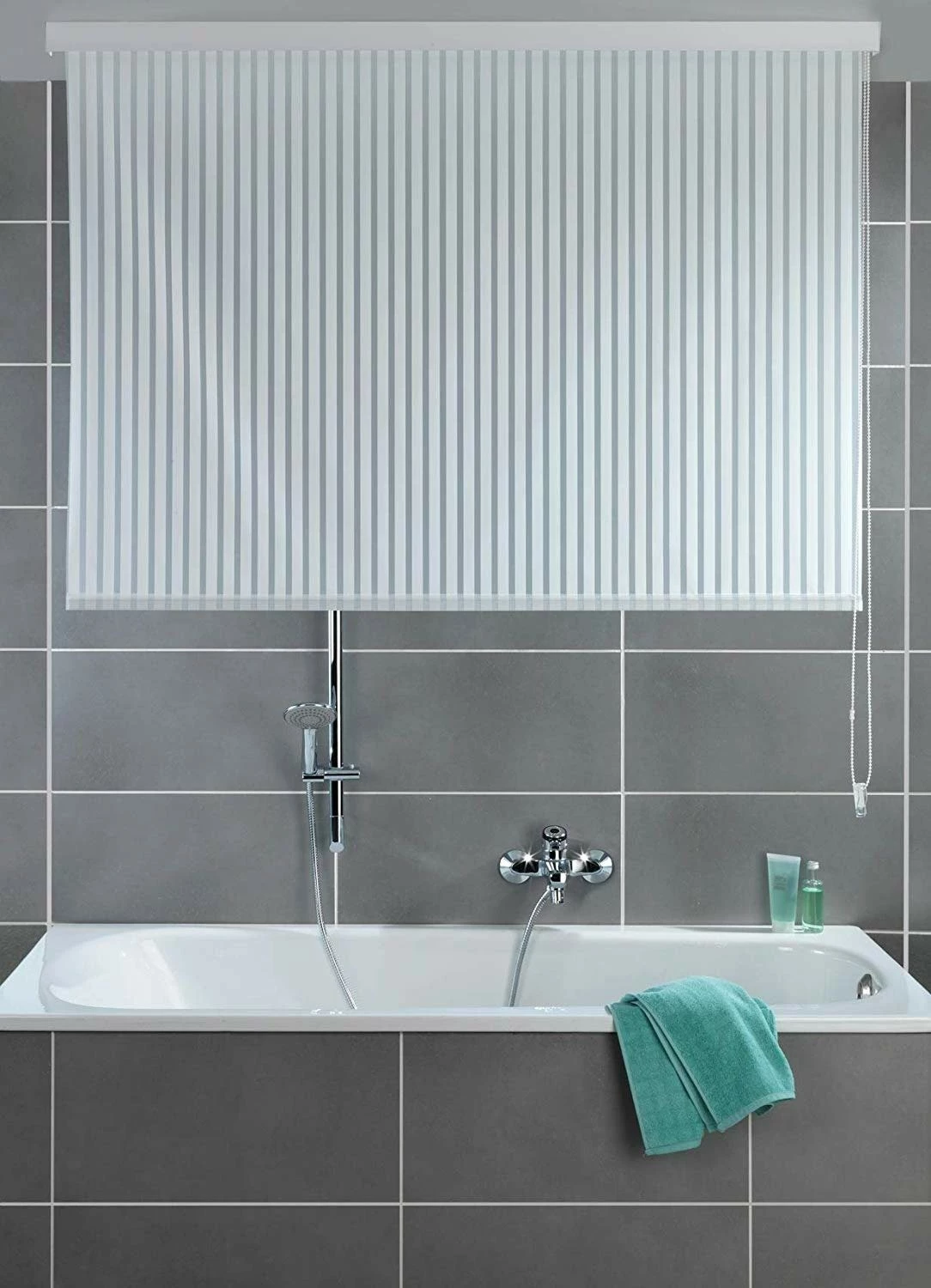 Um das Bad oder die Dusche abzudecken, benötigen Sie keine zusätzliche Stange mehr, da das Rollo mit einer speziellen Aluminiumkassetteausgestattet wurde. Das Material ist zusätzlich resistent gegen Feuchtigkeit und Rost. Alle Schrauben für die Montage sind im Kit enthalten.