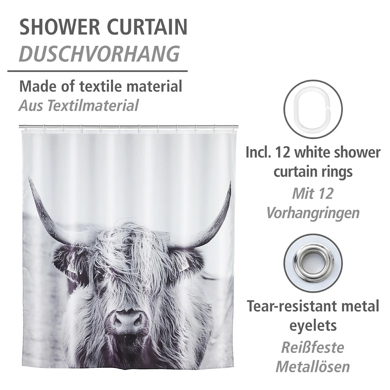 - Lieferumfang: Duschvorhang, 12 Duschvorhangringe