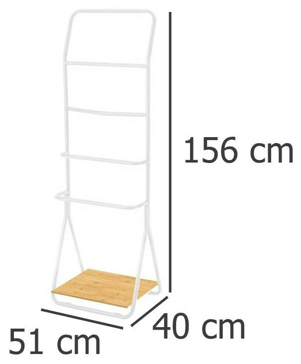 VERONA Handtuchhalter verfügt über fünf Arme und ein Regal. Eine solche Lösung macht Sie in der Lage, Handtücher sogar eine große Familie zu lagern. Das Zubehör kann überall platziert werden, und die kleinen Abmessungen (51 x 40 x 156 Zentimeter) machen den Kleiderbügel auch in kleine Badezimmer passen. Es ist erwähnenswert, dass das Markenprodukt von WENKO aus Metall und Bambus besteht, daher ist es vollständig resistent gegen versehentliches Übergießen und Feuchtigkeit.