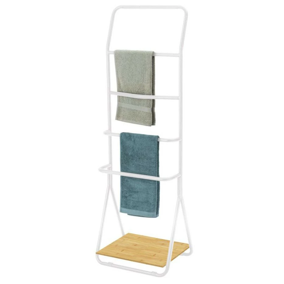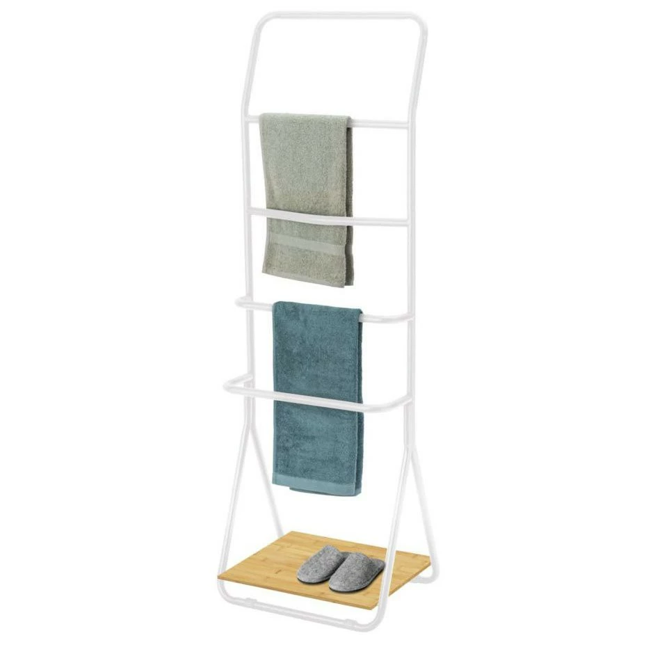 Der WENKO VERONA Handtuchhalter vereint mehrere Funktionen: Sie können das aktuell verwendete Handtuch aufhängen und die Hausschuhe aufstellen. Eine solche Lösung lässt Sie mehr auf eine kleine Oberfläche passen, als Sie denken.