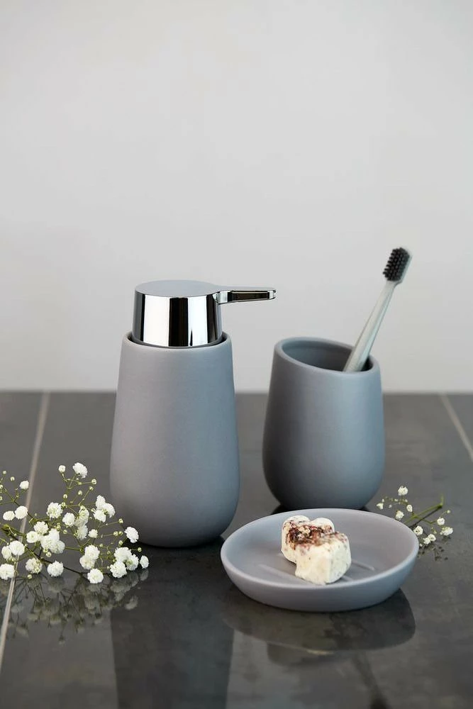 Der Becher zeichnet sich durch hochwertige Keramik aus, wodurch er vollständig wasser- und feuchtigkeitsresistent ist. Die graue Farbe in Kombination mit der unsymmetrischen Form führt dazu, dass das Produkt in fast jeder Anordnung zu finden ist – vom skandinavischen bis zum industriellen Stil. Die Maße des BADI Pinselbechers betragen 8 x 11 Zentimeter.