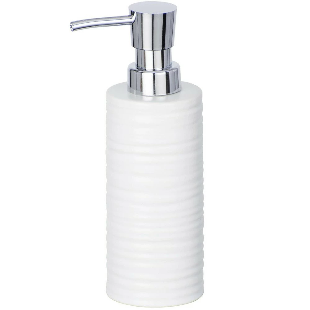 - Spender für Flüssigseifen, in klassischer weißer Farbe.