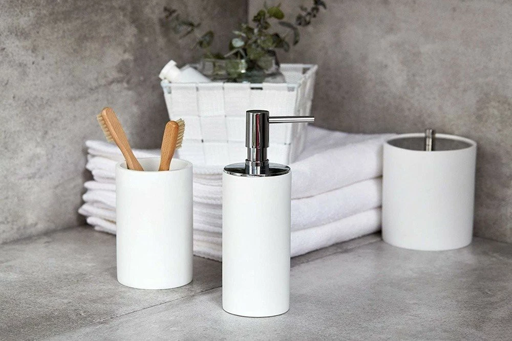 Sie suchen einen eleganten Flüssigseifenspender? Probieren Sie das Produkt der Ida-Serie aus! Der Spender ist ein unverzichtbares Element des Badezimmerinnenraums , wenn Sie Flüssigseife bevorzugen . Das Produkt erleichtert die Zuteilung einer geeigneten Portion Seife, die für ein gründliches Händewaschen notwendig ist. Die Verwendung des Ida-Spenders ist extrem einfach — einfach die praktische Pumpe oben auf das Produkt drücken. Die Innenseite des Behälters kann mit jeder anderen Flüssigkeit gefüllt werden , um das Produkt auf Ihre individuellen Bedürfnisse abzustimmen. Ida Spender ist eine Kombination aus Einfachheit und Funktionalität. In seinem Inneren wird es 140 ml jedes flüssigen Produkts aufnehmen. Der Behälter besteht aus hochwertigem Polyresin Kunststoff, wodurch er lange in einwandfreiem Zustand bleibt. Das Produkt mit den Abmessungen von 6 x 17,5 x 7,5 cm passt perfekt in ein modernes Badezimmer oder eine separate Toilette, die mit einem Waschbecken ausgestattet ist.