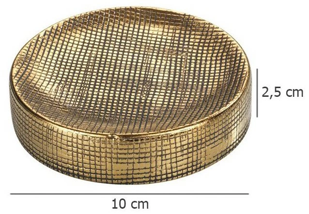 RIVARA Seife hat eine runde Form und eine goldene Farbe, so dass sie perfekt mit hellen Waschbecken kombiniert wird. Es hat einen Durchmesser von 10 cm, so dass es leicht auf das Waschbecken oder neben der Badewanne passen kann. Es nimmt auch nicht viel Platz in Anspruch, so dass Sie sicher eine Zahnbürstenbecher oder Flüssigseifenspender daneben stellen können. Dank der Seifenschale erhalten Sie Ordnung im Badezimmer und vergessen die schmutzige Spüle, und die Seife selbst bleibt trocken und sieht immer ästhetisch ansprechend aus.