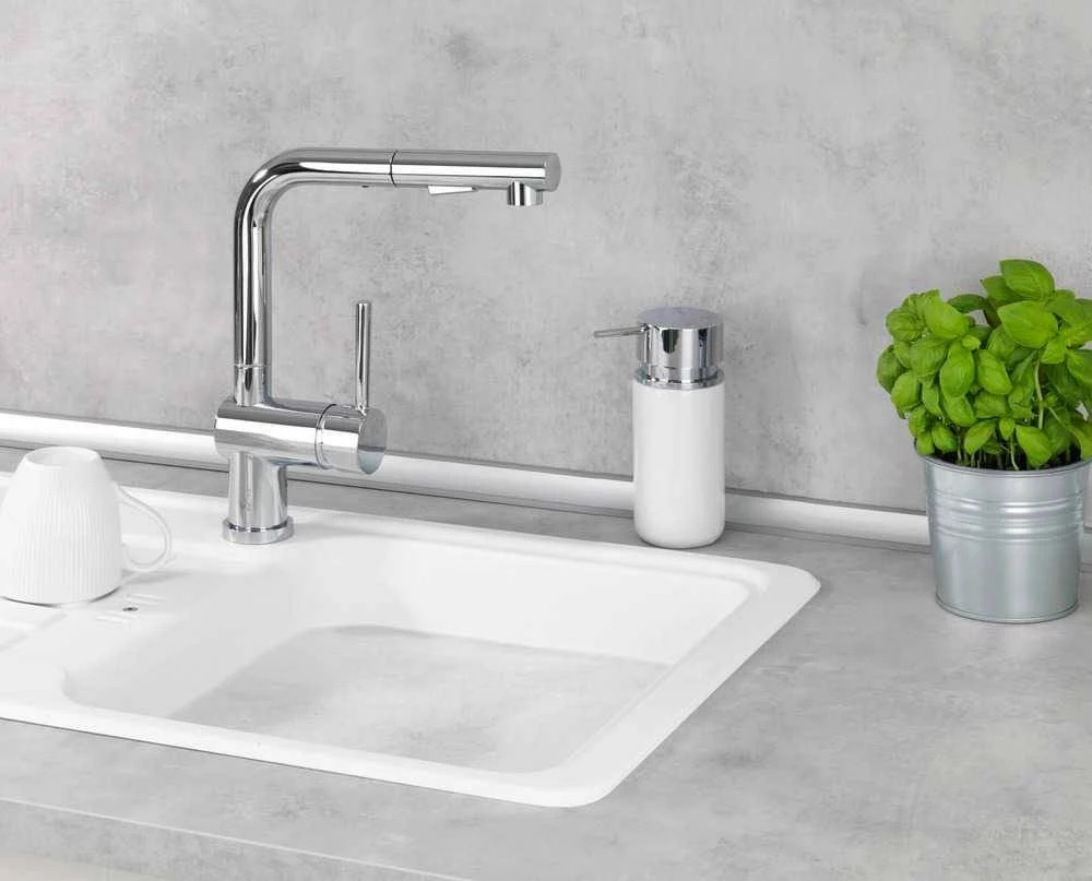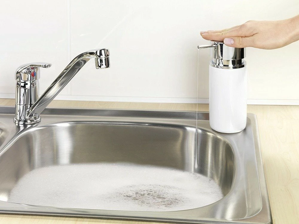 Vervollkommnen Sie für ein modernes Badezimmer und mehr. Ermöglicht schnelles und bequemes Auftragen von Seife. Darüber hinaus funktioniert es gut als Spender für Geschirrspülmittel, Lotion, Shampoo usw. Entwickelt für Mehrfachbefüllung. Kapazität 250 ml. Hergestellt aus hochwertiger Keramik. Pumpe und Kunststoffdeckel stilisiert auf verchromtem Metall.