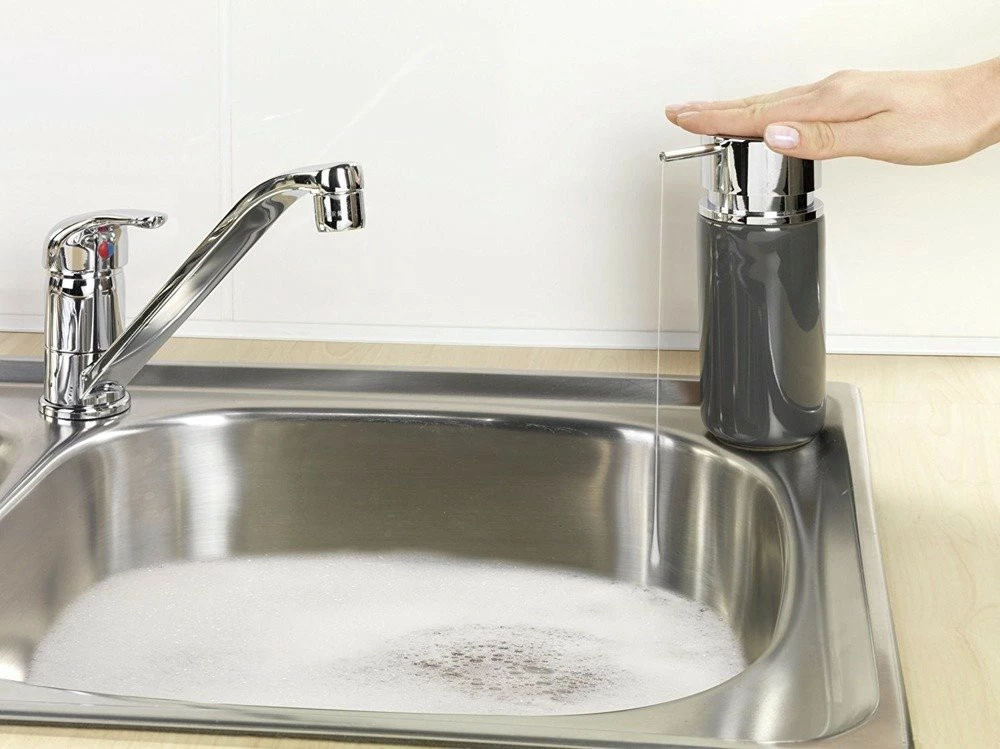 Vervollkommnen Sie für ein modernes Badezimmer und mehr. Ermöglicht schnelles und bequemes Auftragen von Seife. Darüber hinaus funktioniert es gut als Spender für Geschirrspülmittel, Lotion, Shampoo usw. Entwickelt für Mehrfachbefüllung. Kapazität 250 ml. Hergestellt aus hochwertiger Keramik. Pumpe und Kunststoffdeckel stilisiert auf verchromtem Metall.