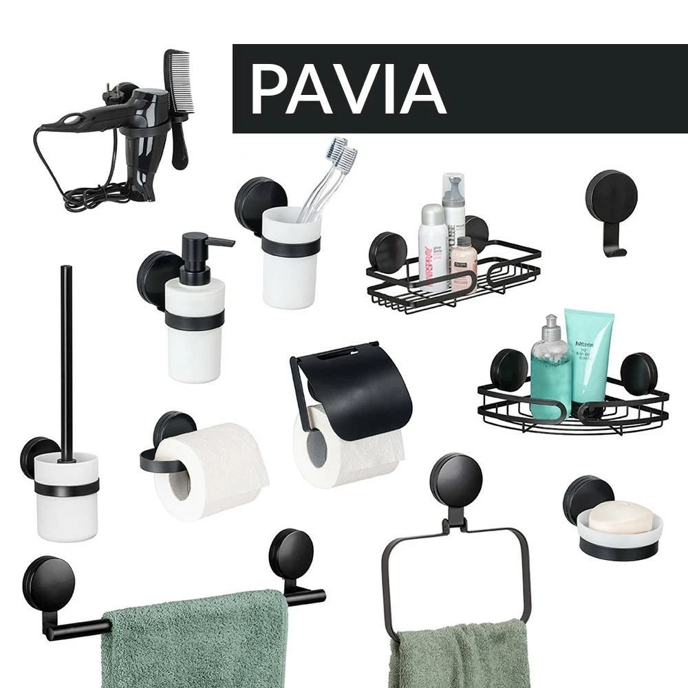 Die gesamte PAVIA-Serie von Badaccessoires zeichnet sich durch ihr modisches, industrielles Design durch ihr hochwertiges Metall aus. Der Loft-Stil, wie der industrielle, war ein interner Hit der letzten Monate. Kontrastierende Accessoires im hellen Interieur des Badezimmers oder der Toilette in diesen Stilen verleihen Ihrer Wohnung einen modischen Charakter.