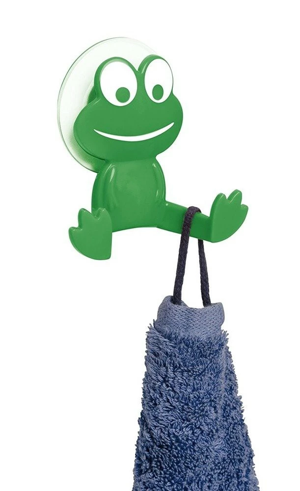 Ein dekorativer Haken mit einem attraktiven Froschmotiv wird in jedem Haus oder Büro gut funktionieren. Es wird in Küche, Bad, WC, Kinderzimmer oder Hauswirtschaftsraum verwendet. Es erleichtert die Aufbewahrung von Handtüchern, Tüchern, Küchenhandschuhen, Bademänteln und Kleidung. Die Montage mit einem Saugnapf erfordert kein Bohren oder Kleben. Alles, was Sie tun müssen, ist die Rückseite mit Wasser zu befeuchten und an einem geeigneten Ort zu befestigen. Haftet gut auf glatten, ebenen Oberflächen. Es beschädigt die Glasur oder das darauf befindliche Muster nicht.